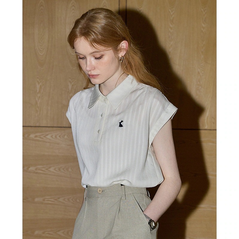 非常にインテリジェントなエリートミニマリストノースリーブシャツ女性 2025夏新作百刺繍ブラウスシャツ