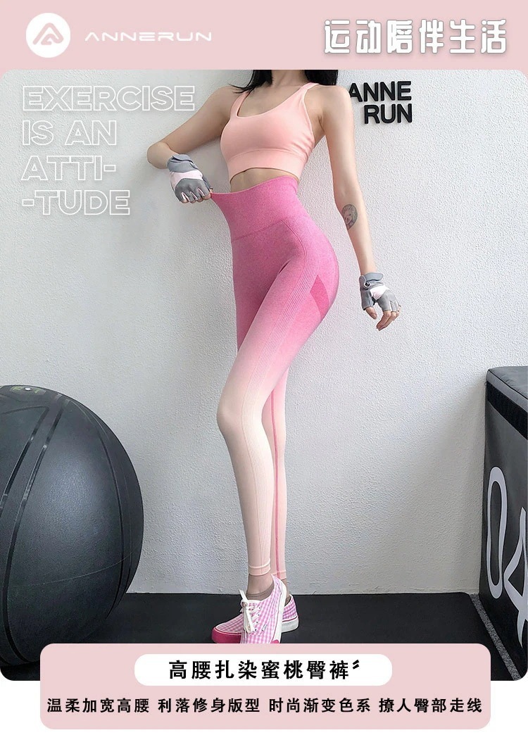 迅速出荷ヨガパンツ 新しいグラデーションカラーおなかタッキングとヒップリフティングヨガパンツ女性用ハイウエストスポーツパンツ フィットネスヒップパンツ