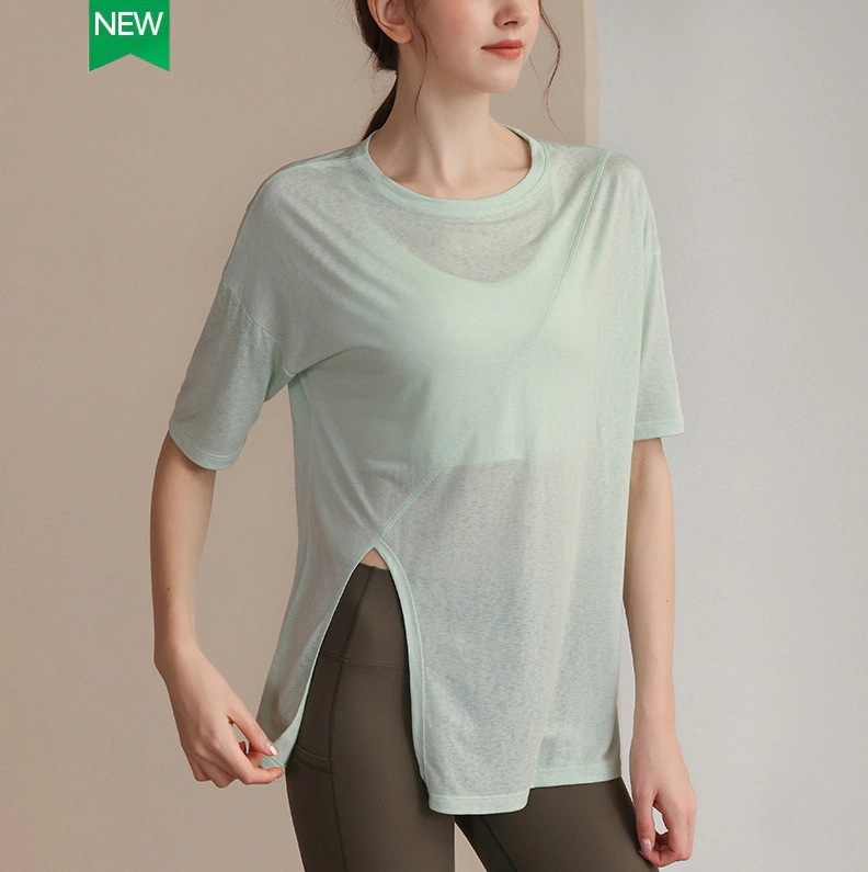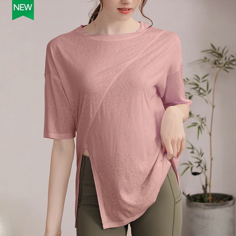 迅速出荷ヨガトップス女性ルーズ半袖Tシャツランニングフィットネスパーカーヨガウェア