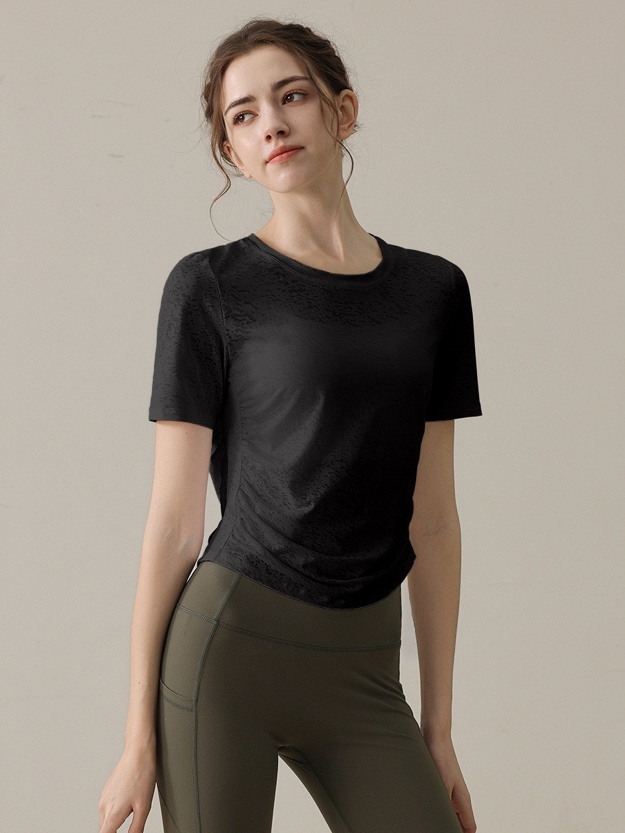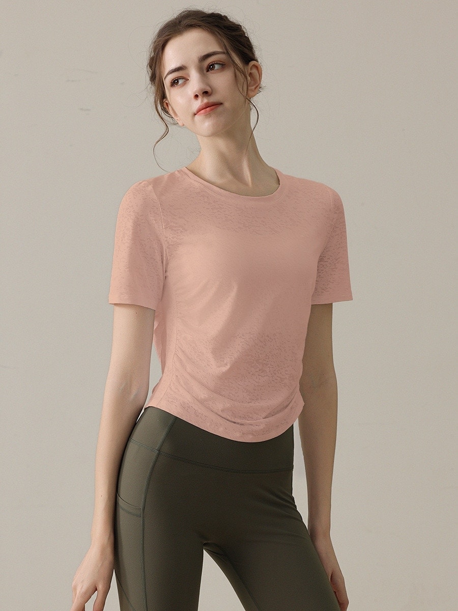 迅速出荷ヨガウェア スモック 半袖 スポーツ ヨガウェア 女性 フィットネスウェア トップス Tシャツ