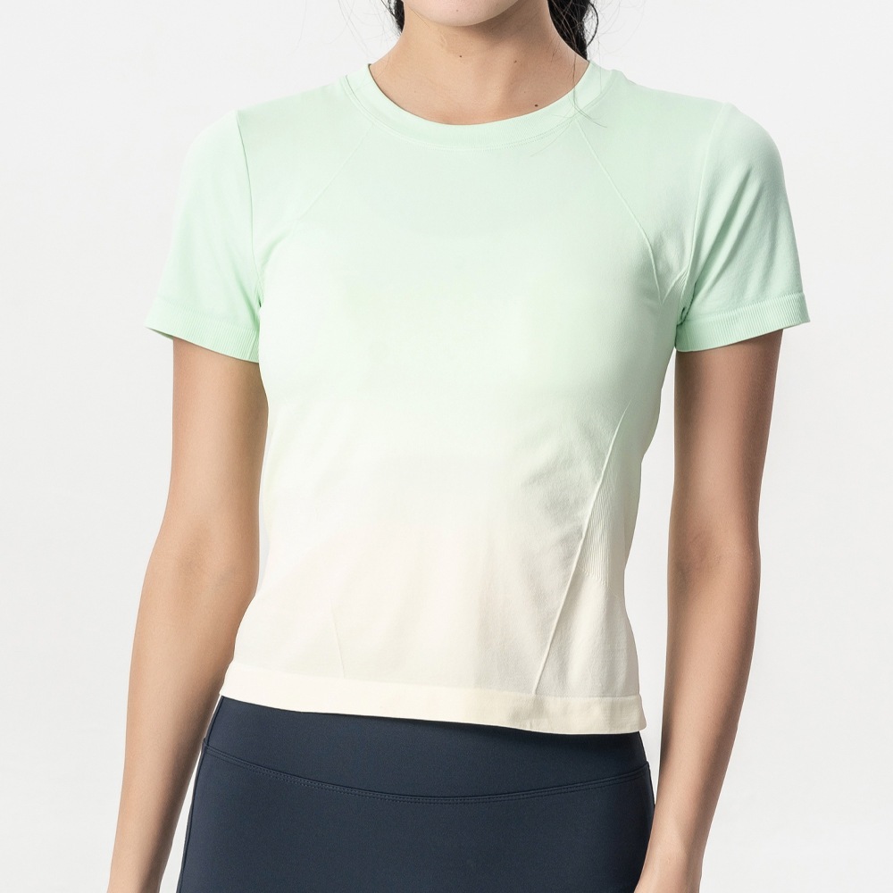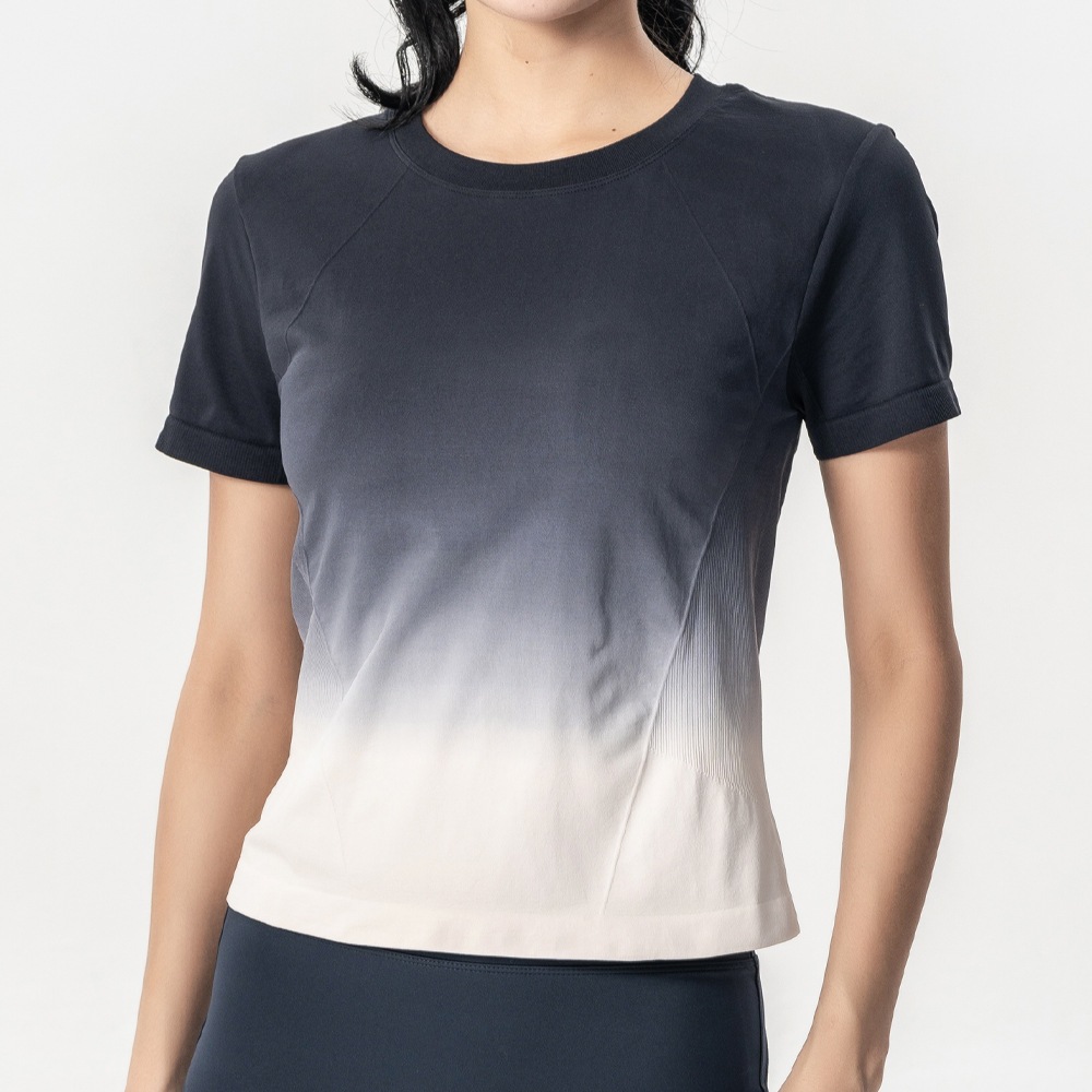 迅速出荷ヨガトップス 新作 フィットネス 半袖 通気性 ヨガウェア ファッション グラデーション スポーツ トップス