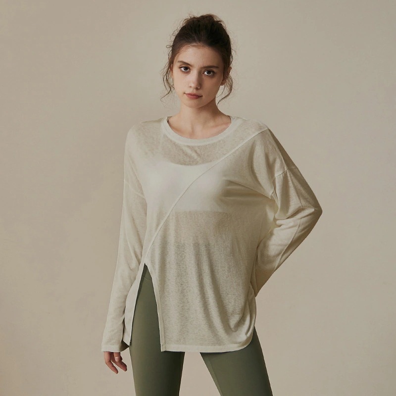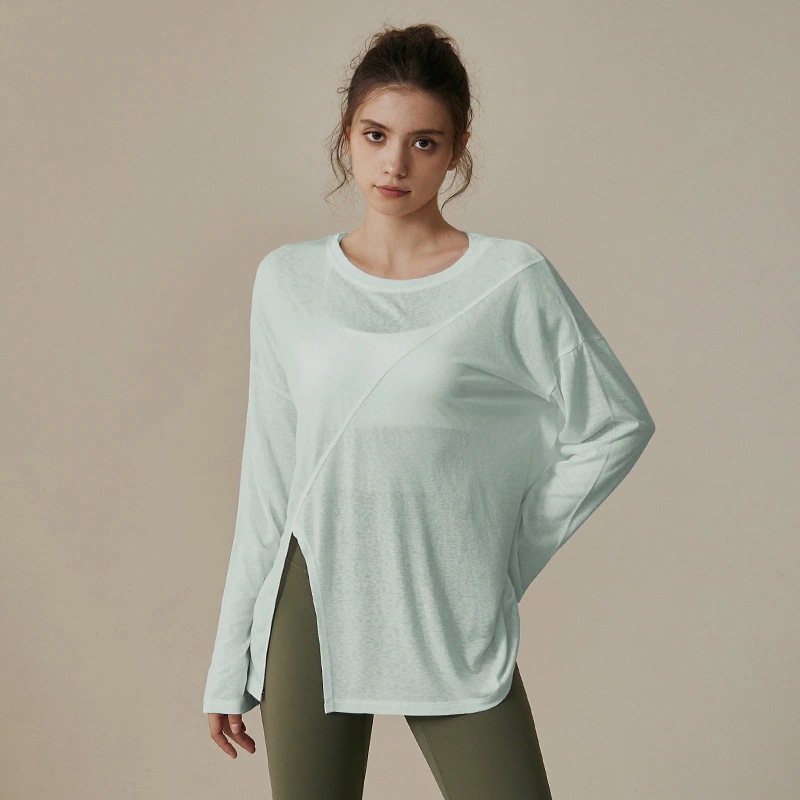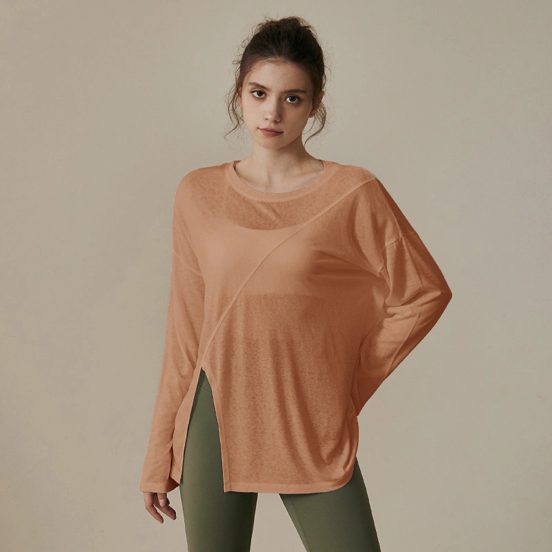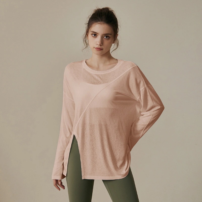 迅速出荷ヨガウェア スポーツ ルーズ スモック Tシャツ 長袖 トップス フィットネス セット
