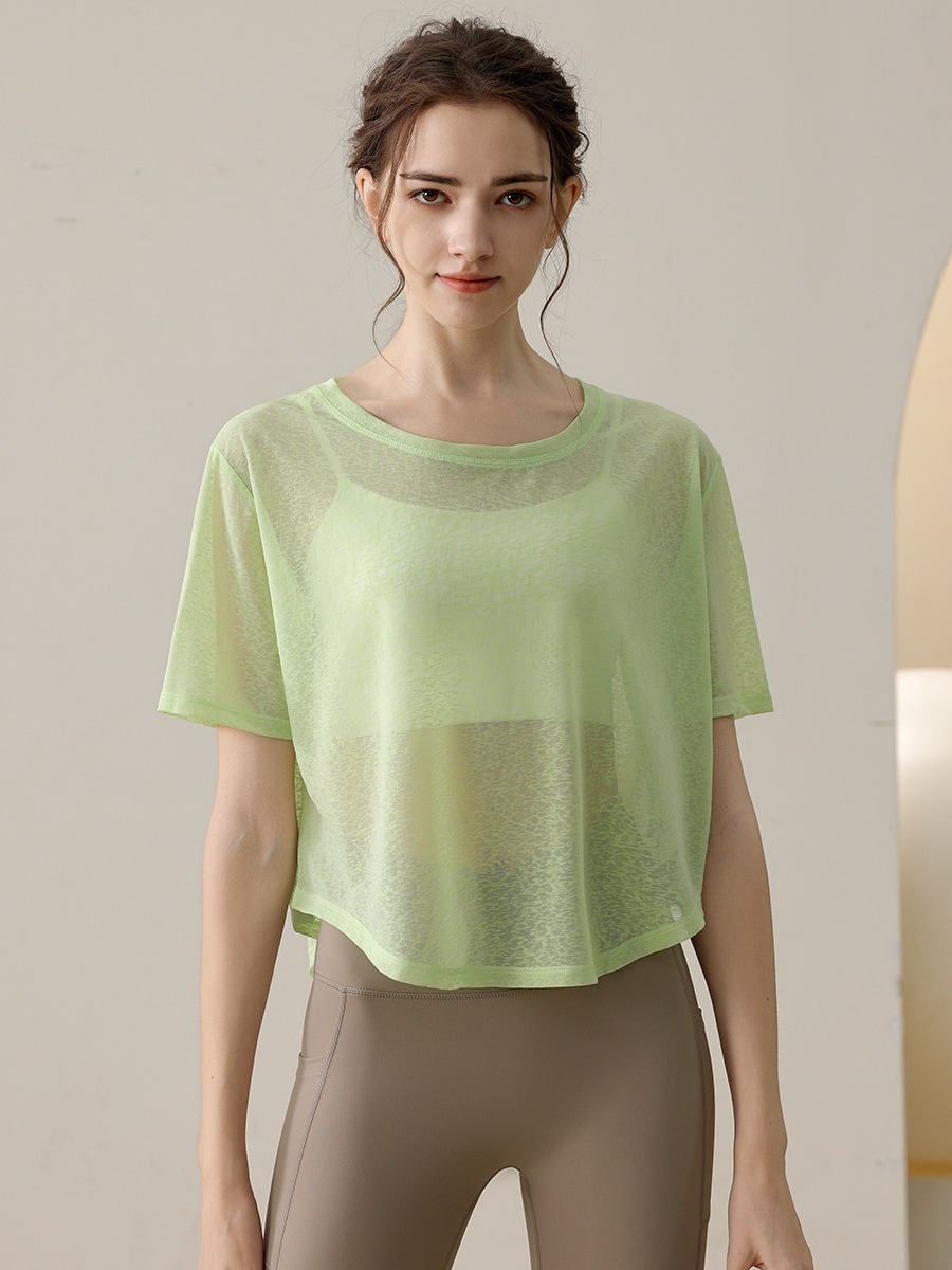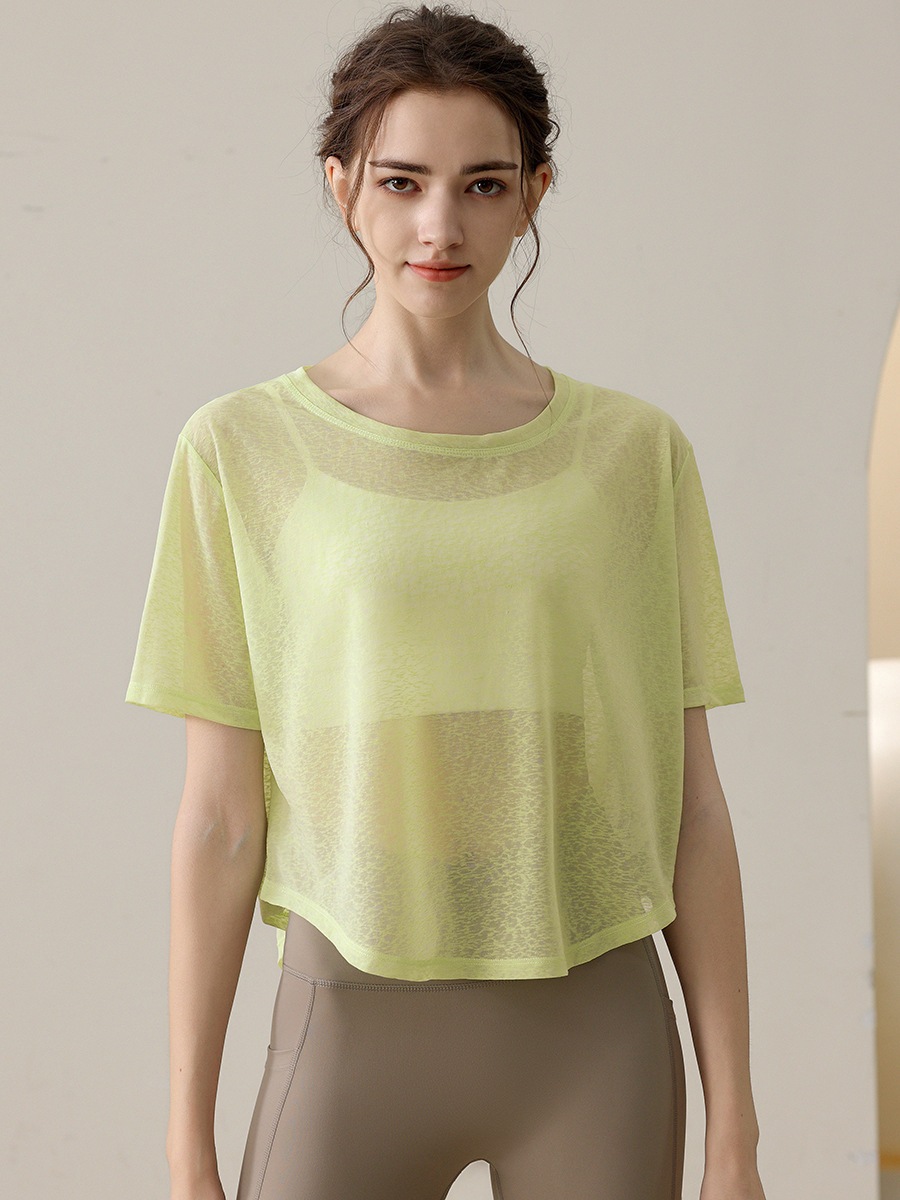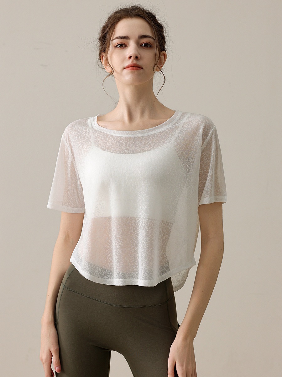 迅速出荷薄手 ゆったり ヨガトップス 女性 カジュアル ランニング スポーツ Tシャツ フィットネス 服 Tシャツ