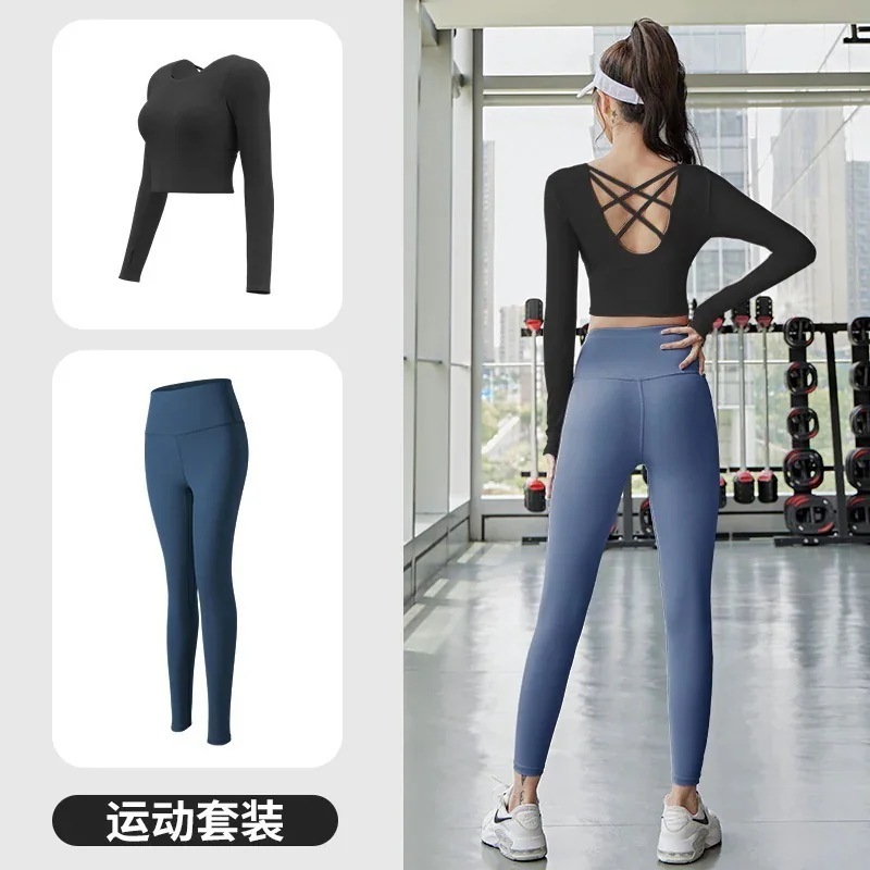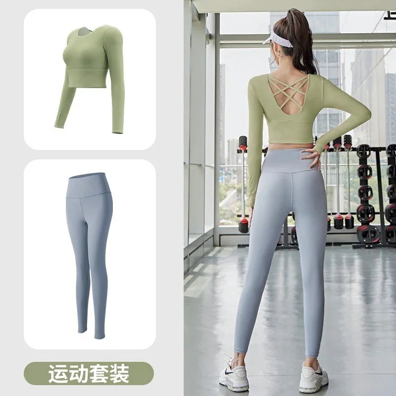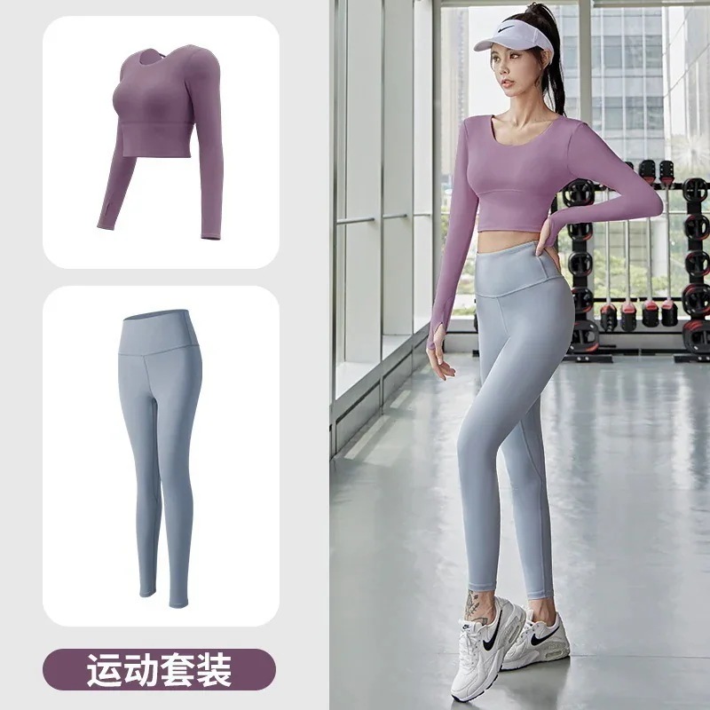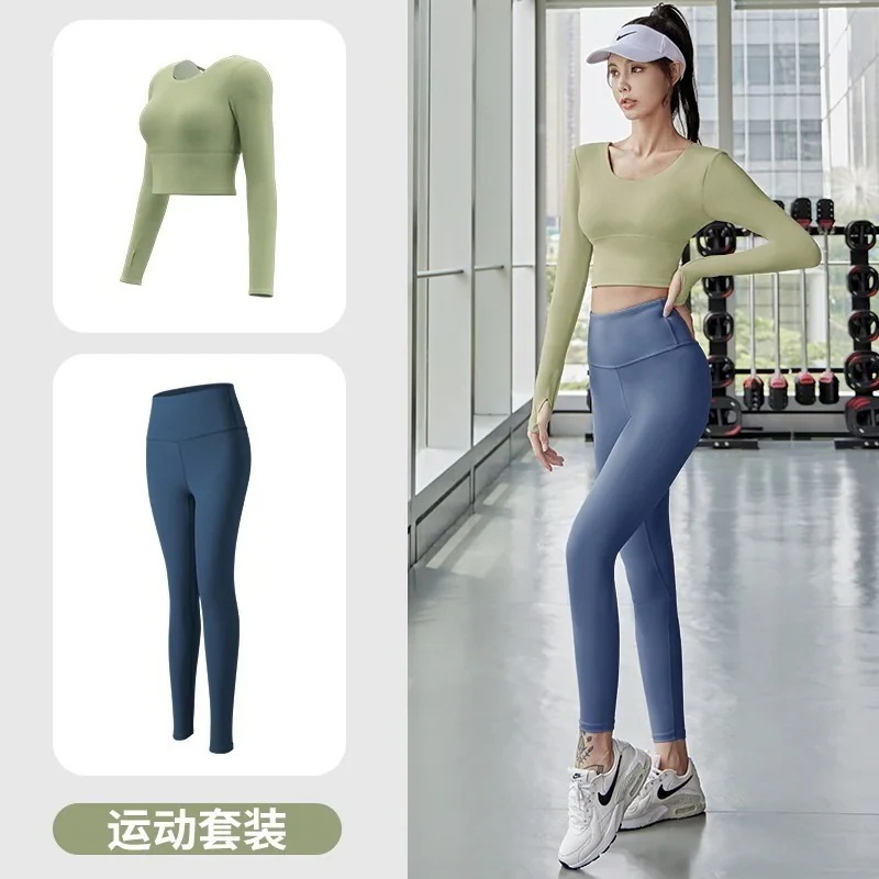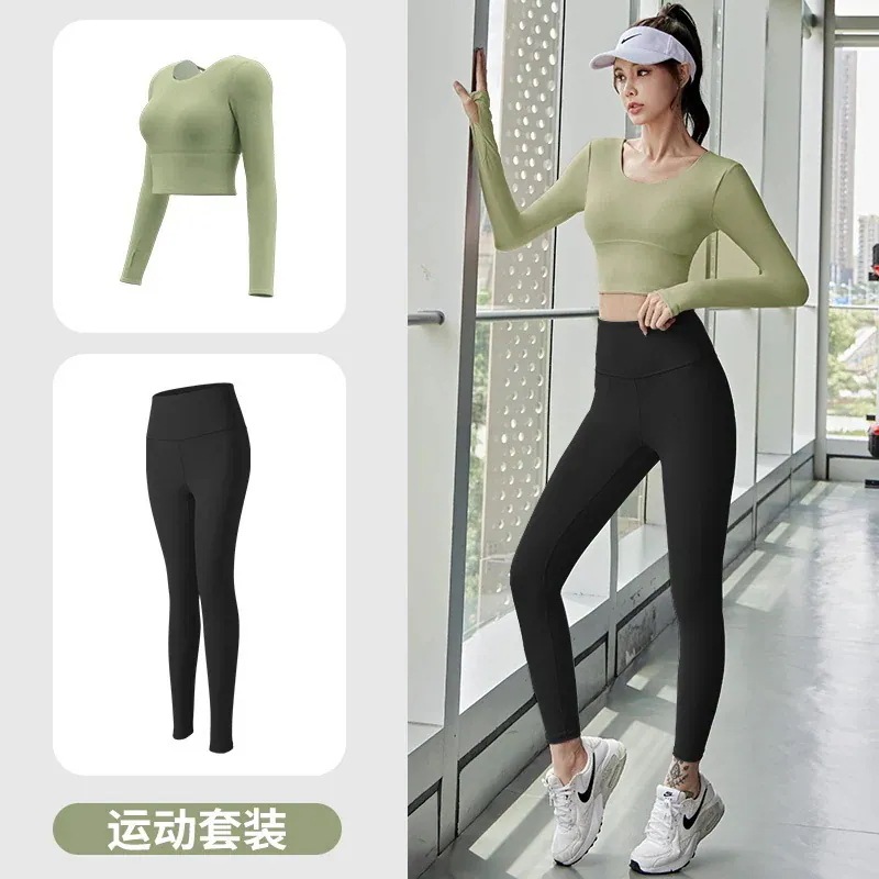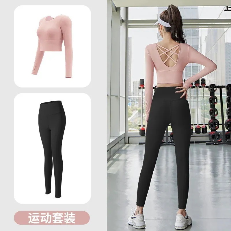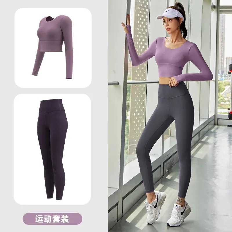 迅速出荷ヨガウェアセット長袖フィットネスヨガウェアトップス