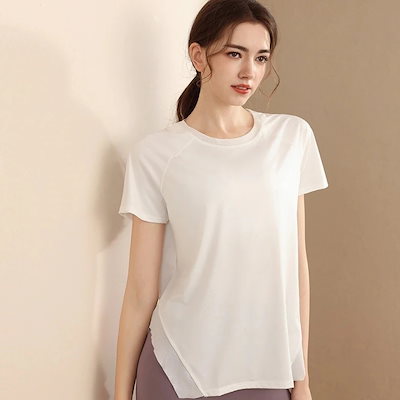 迅速出荷ヨガトップス 新作ゆったり大きいサイズスポーツトップスヨガウェア半袖Tシャツスモック