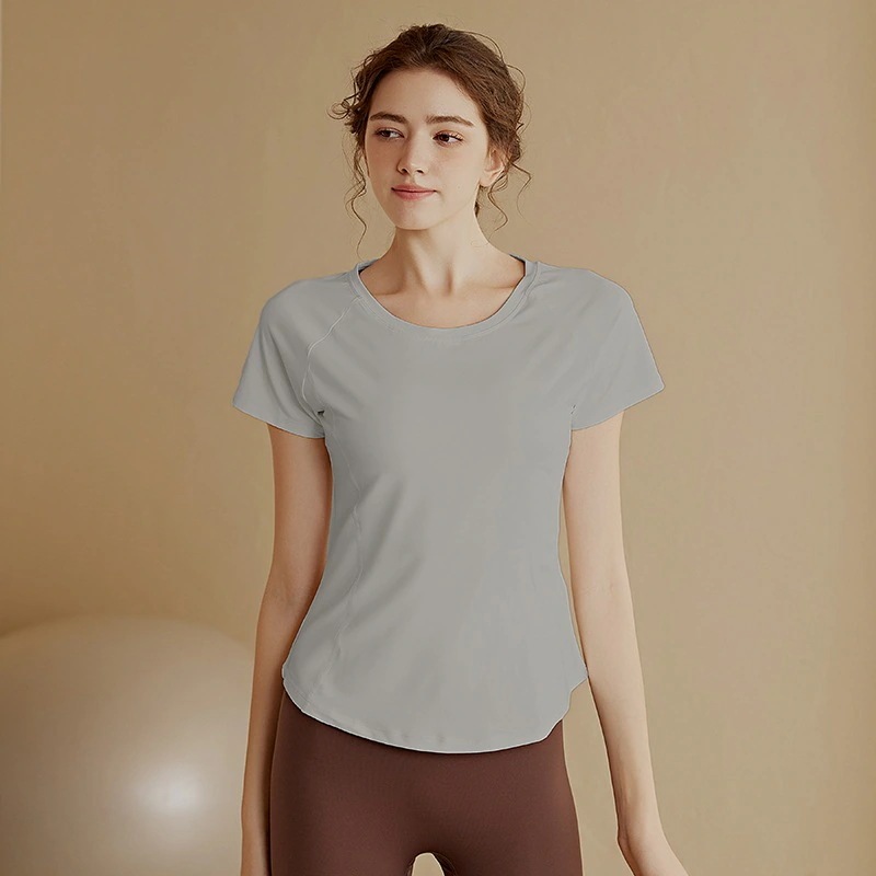 迅速出荷ヨガトップス女性スポーツ半袖Tシャツスリムヨガウェアトップス