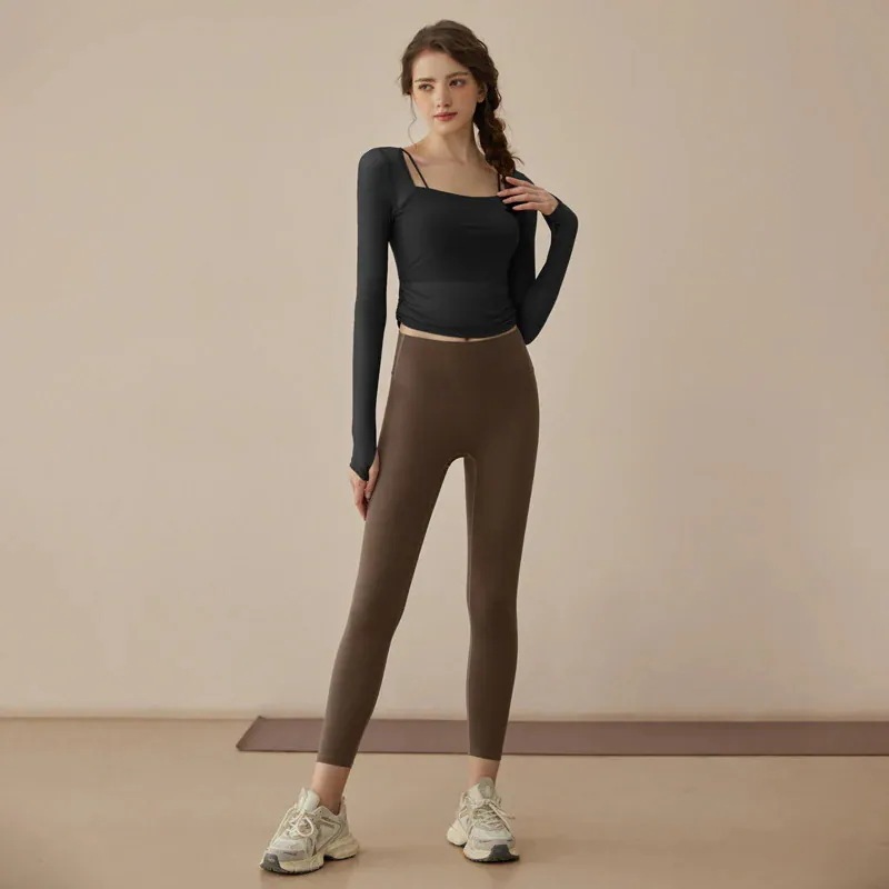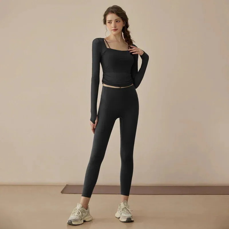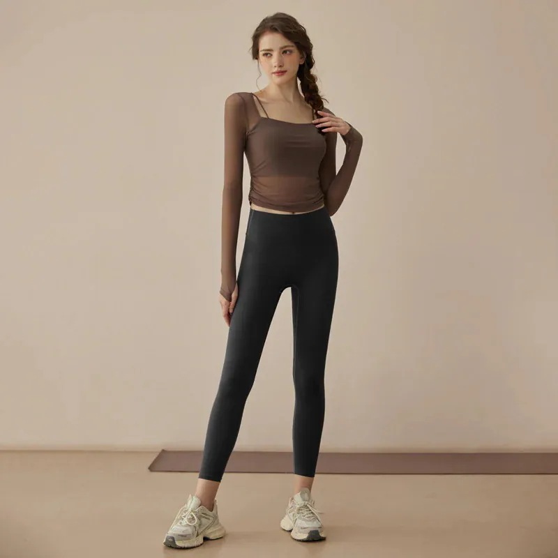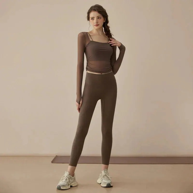 迅速出荷ヨガウェア春新作フェイク2ピースメッシュワントレーニングウェア長袖フィットネスウェアスーツ