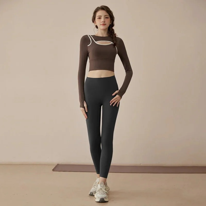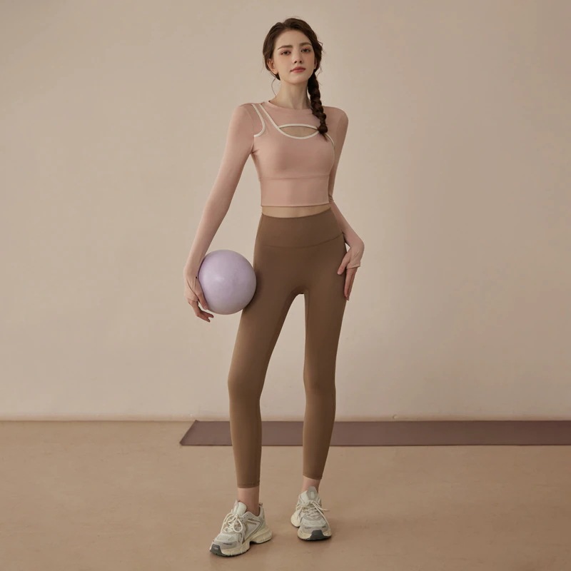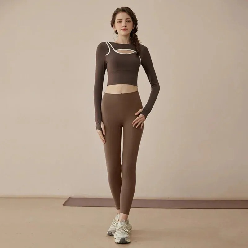迅速出荷ヨガウェアセット春新作通気性トレーニングフィットネスウェア長袖上下スーツ