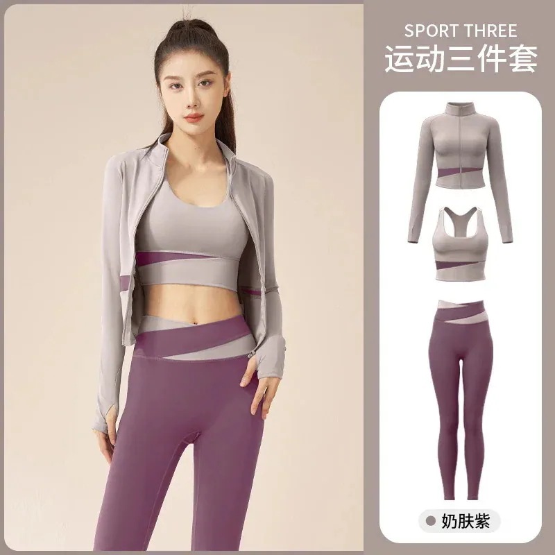 迅速出荷スリーピースヨガウェアセットランニングウエストバンドスリムフィットネスセット