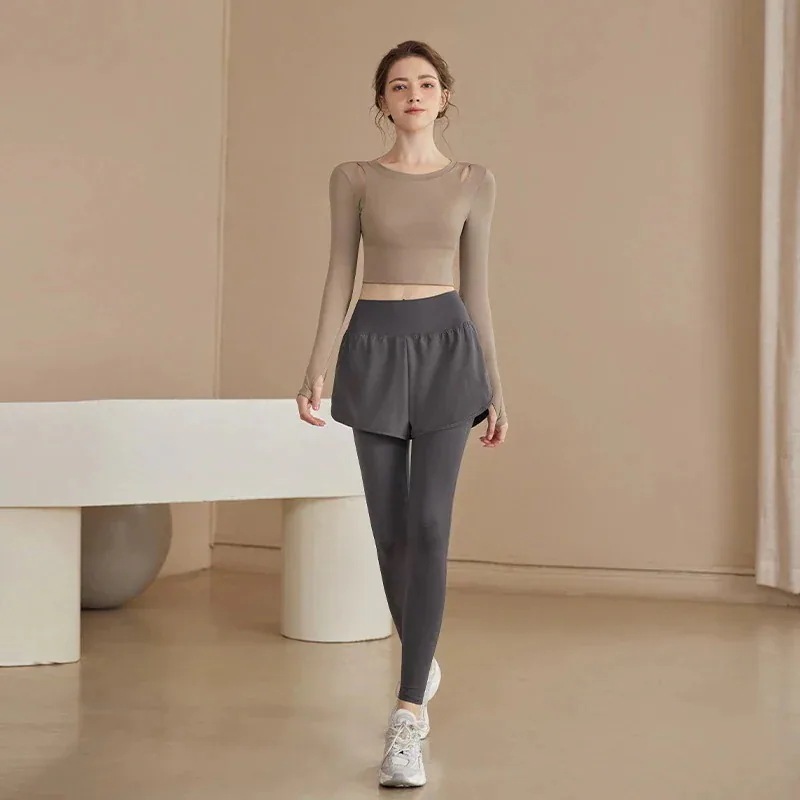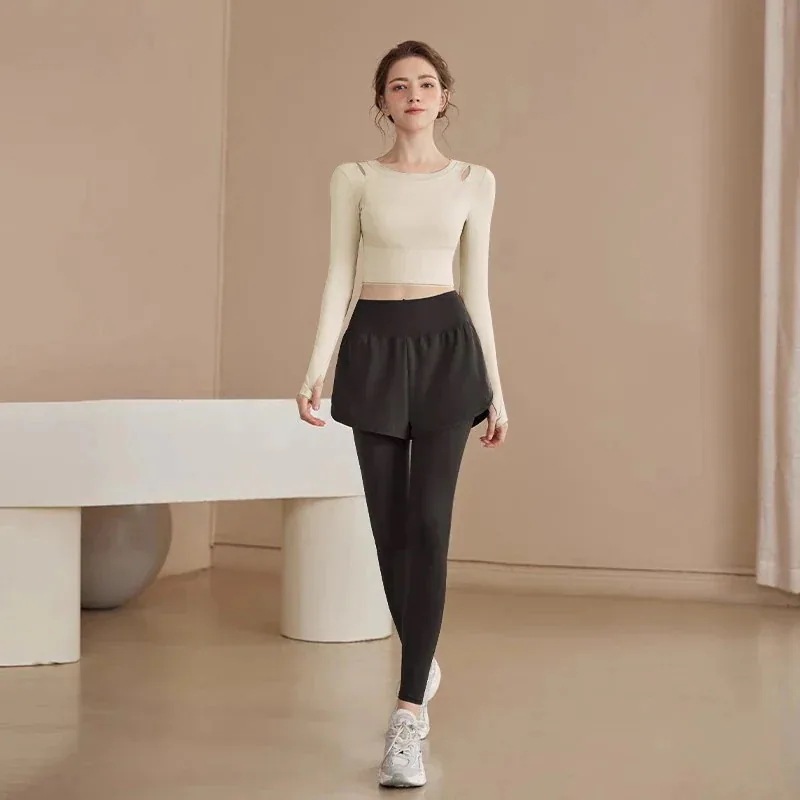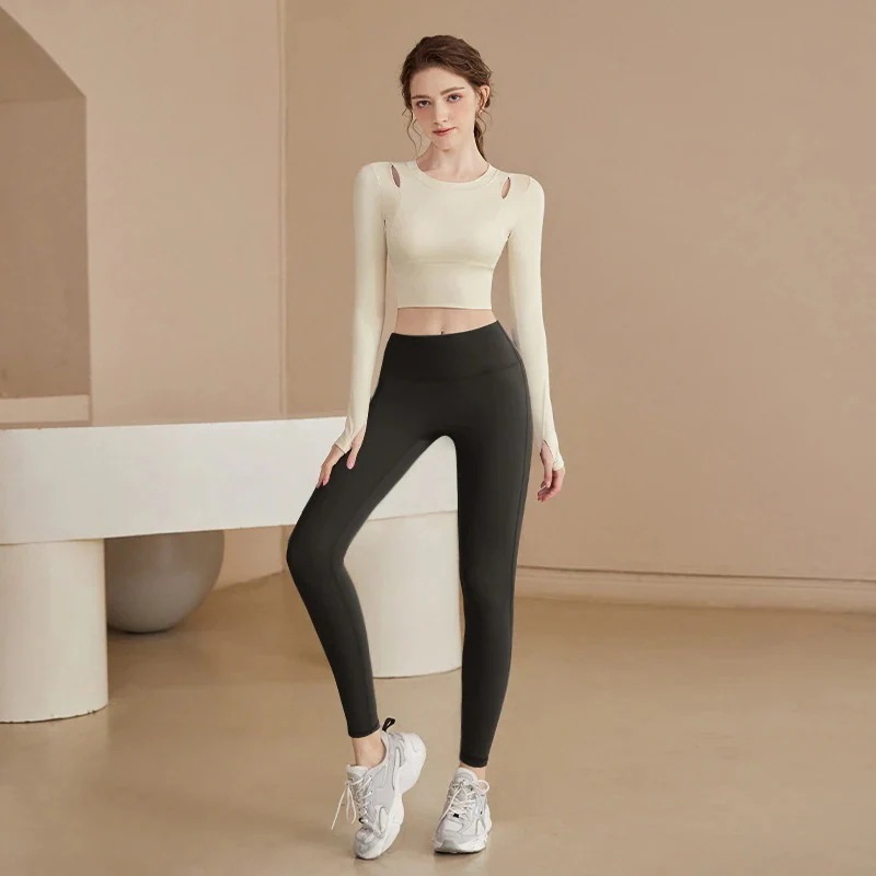迅速出荷ヨガウェアセット新しいフィットネスウェアスポーツ長袖トレーニングウェアタイツ