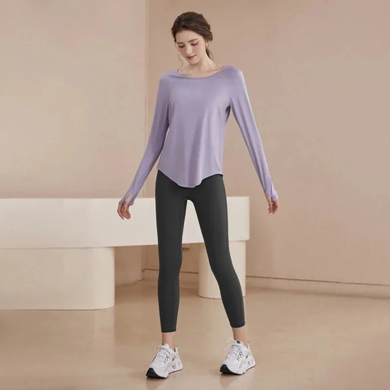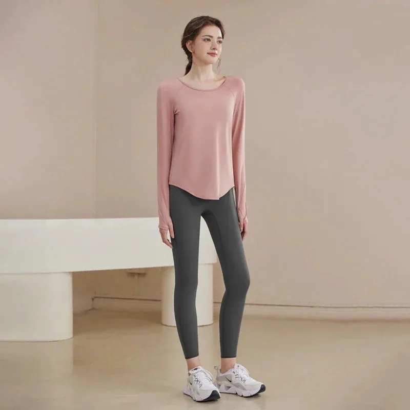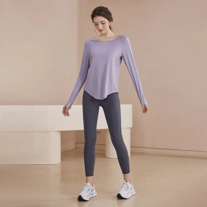 迅速出荷ヨガウェアセット早春スポーツスーツ長袖女性緩いメッシュスプライシング通気性長袖フィットネスウェア