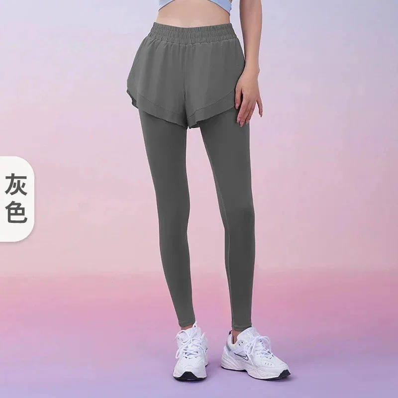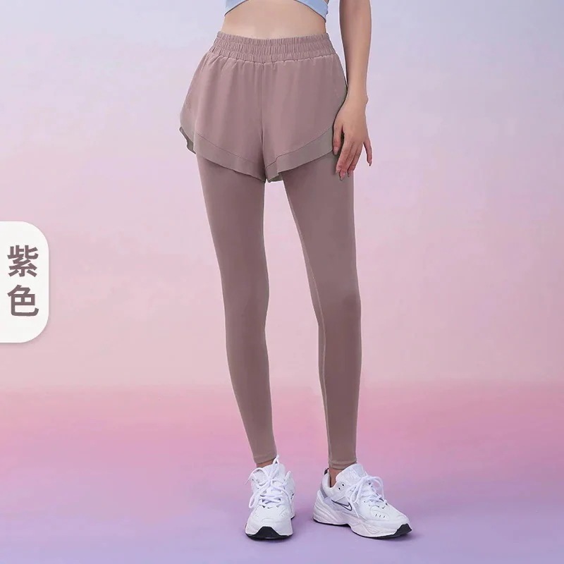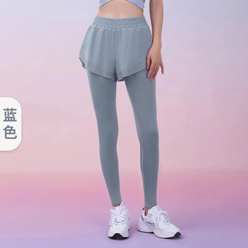 迅速出荷フェイクツーピースヨガパンツスポーツフィットネスパンツハイウエストヒップリフティングヨガパンツ