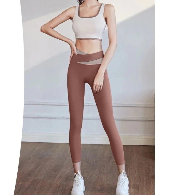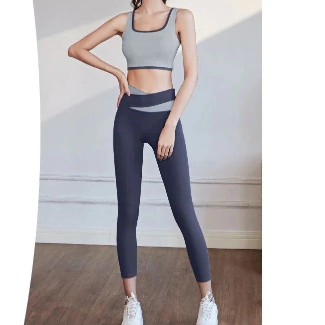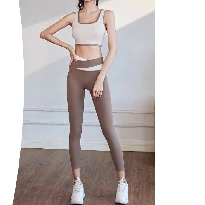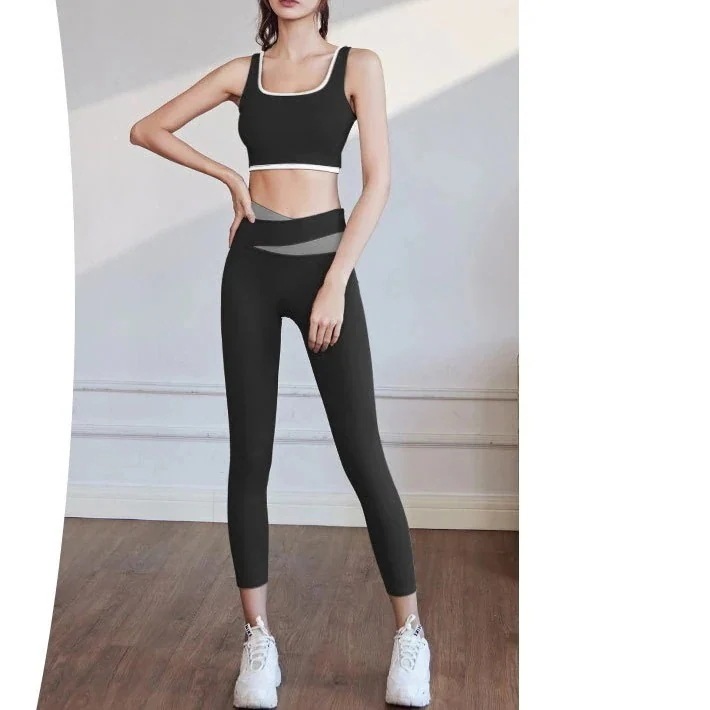 迅速出荷おしゃれヨガウェア高弾性カラーブロッキングスポーツ下着ギャザーショーバストビッグコレクションサイドバスト衝撃防止ヨガブラスポーツウェアスーツ