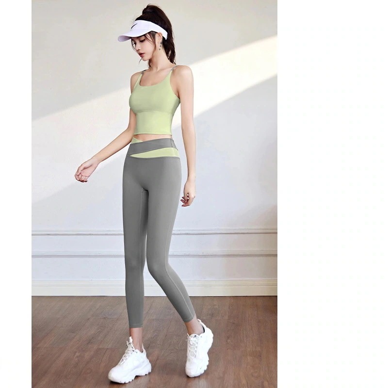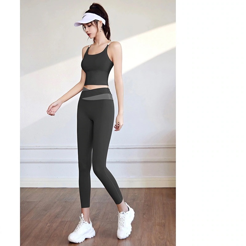 迅速出荷おしゃれヨガウェアヌード通気性スポーツ下着女性高弾性ワンピース ブラジャー スポーツ フィットネス ヨガ タンクトップ セット
