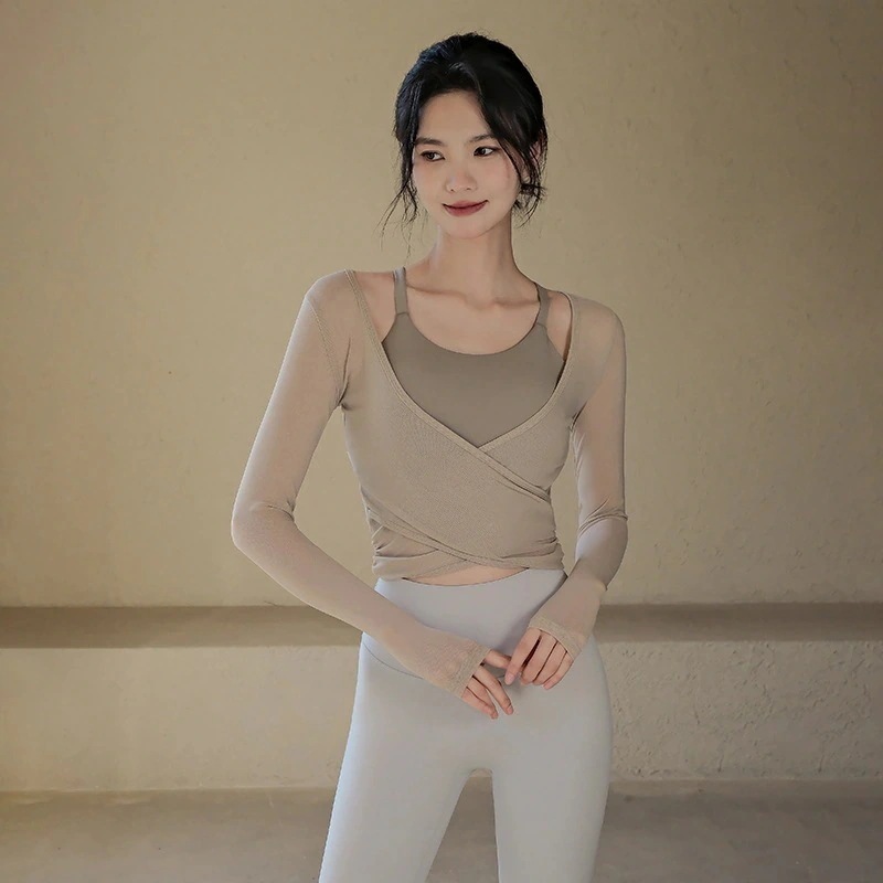迅速出荷ヨガウェア スーツ 女性 胸パッド付き エクササイズ トップス トレーニング フィットネス 長袖
