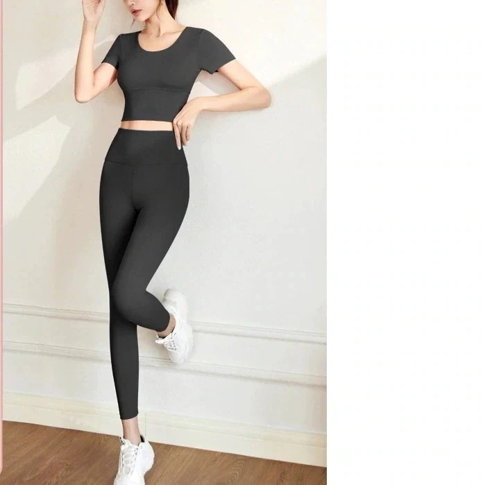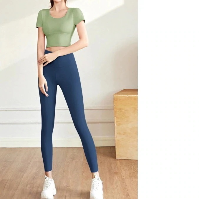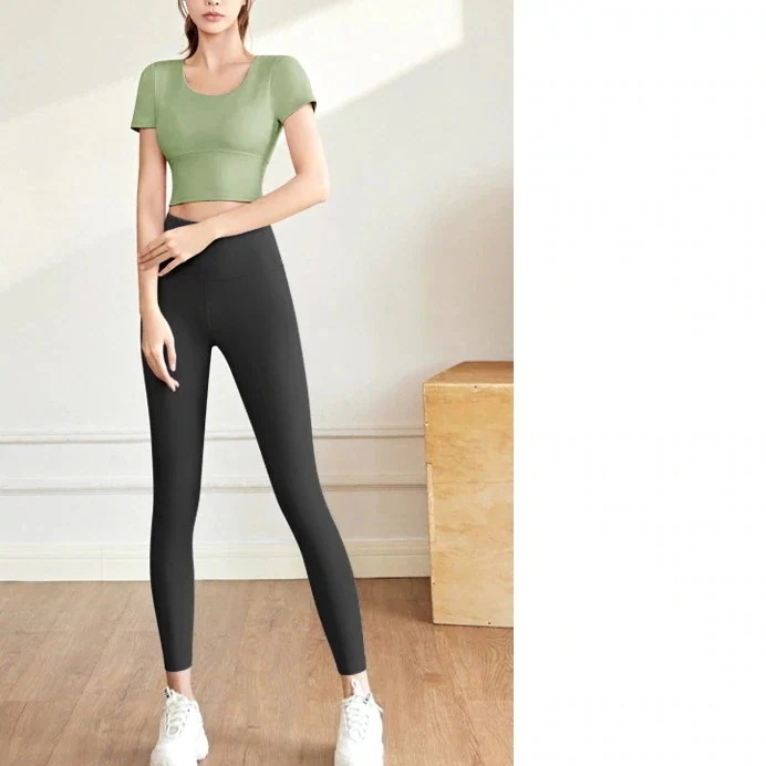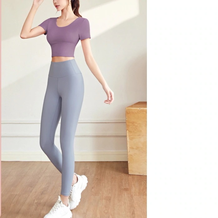 迅速出荷ヨガウェア セット スリム エクササイズ トップス 女性 ヌード 胸パッド付き ヨガスーツ 女性