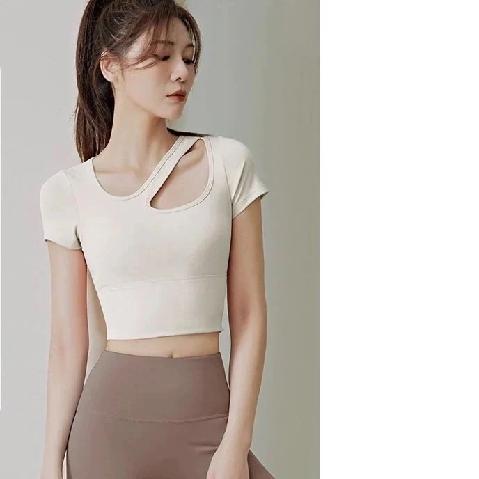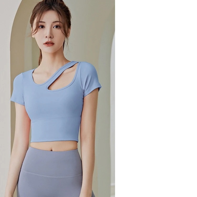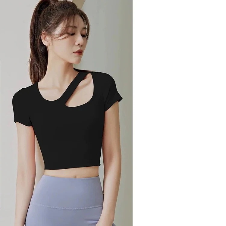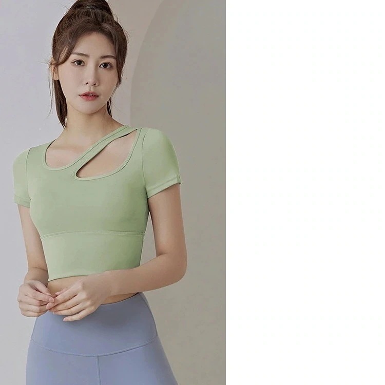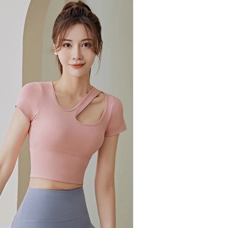 迅速出荷フィットネスヨガトップス夏の女性ブラパッド通気性薄いタイトランニングフィットネススポーツ半袖ヨガトップス