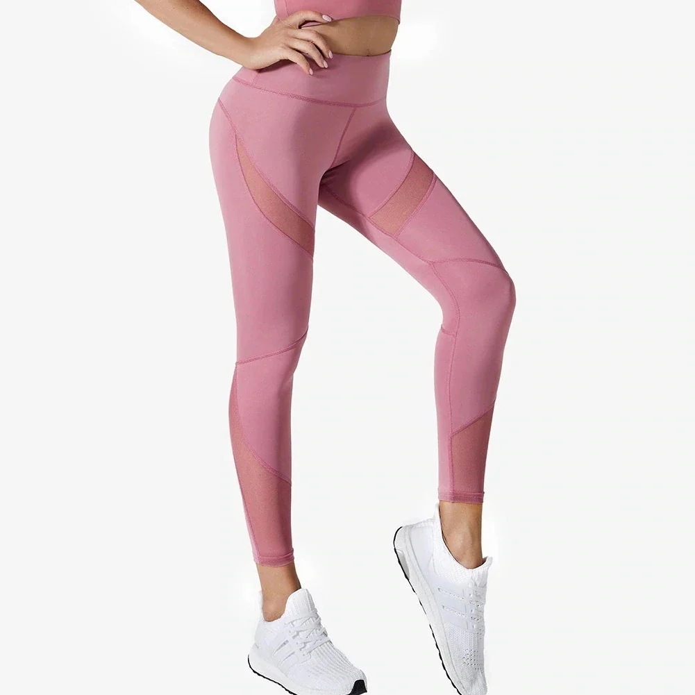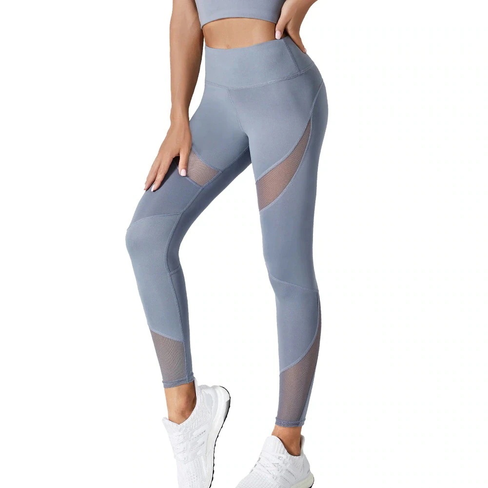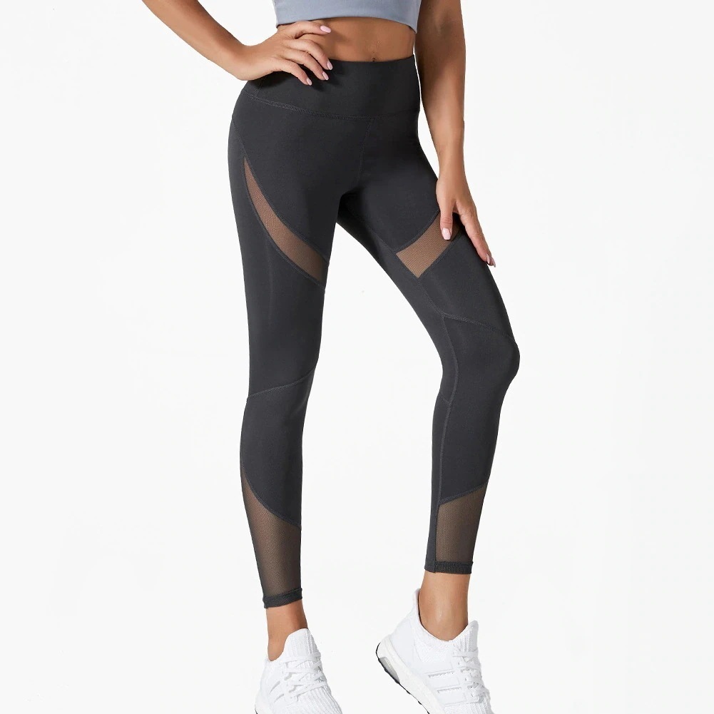 迅速出荷ヨガパンツ女性ハイウエストメッシュスプライシングストレッチスポーツレギンスヒップリフティングフィットネスパンツ