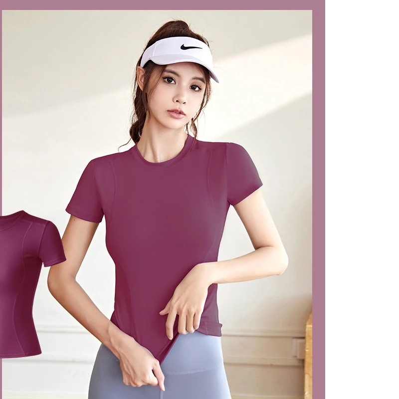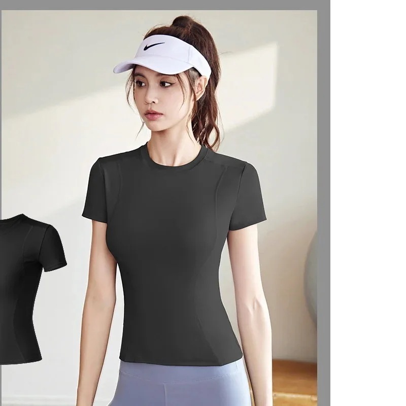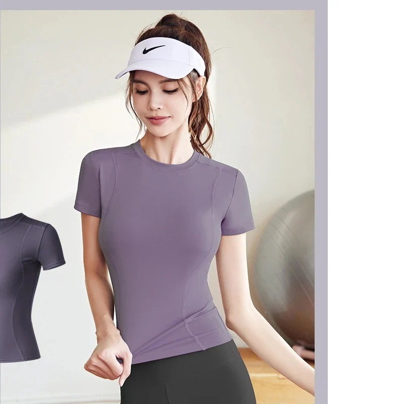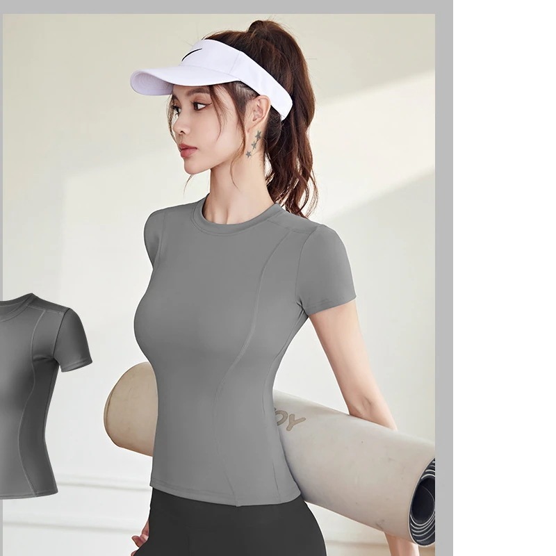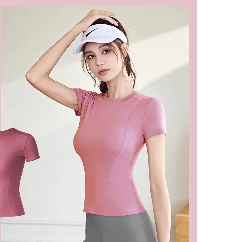 迅速出荷おしゃれヨガウェア春夏スリムスポーツ半袖Tシャツヨガウェアトップス女性フィットネスタイトランニングヨガ半袖