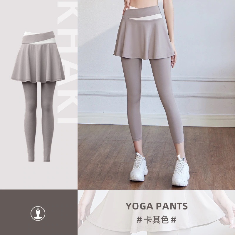 迅速出荷カラーブロッキングフィットネススポーツランニングハイウエストヒップリフティングタイト滑り止めカバーヒップフェイク2ピースヨガパンツ