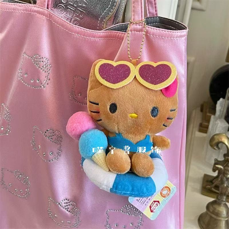 水泳リング ハローキティ ハワイペンダント黒皮猫人形かわいい人形ぬいぐるみバッグペンダントキーホルダー ハローキティ ぬいぐるみペンダント小さいランドセルペンダント友達に贈る可愛い猫人形