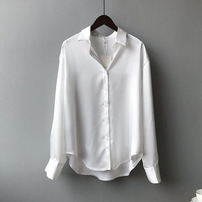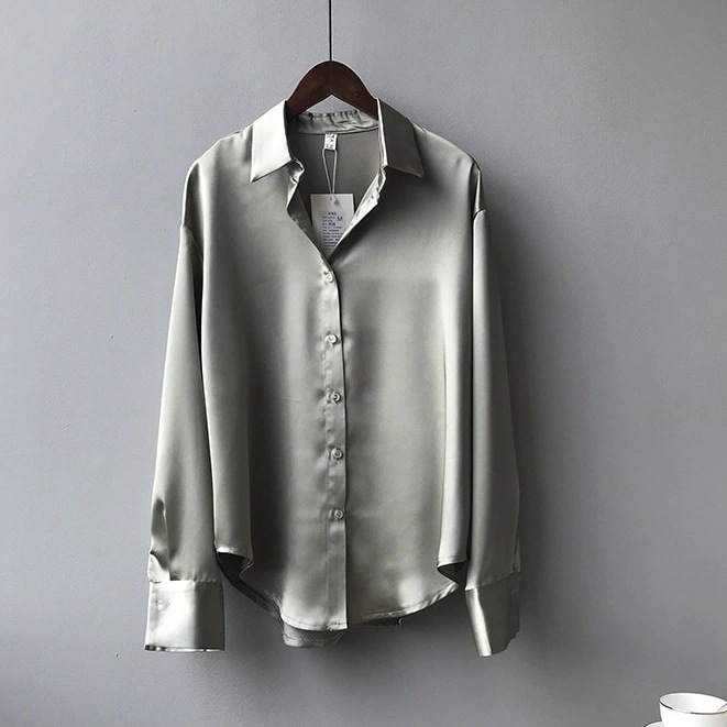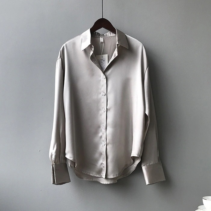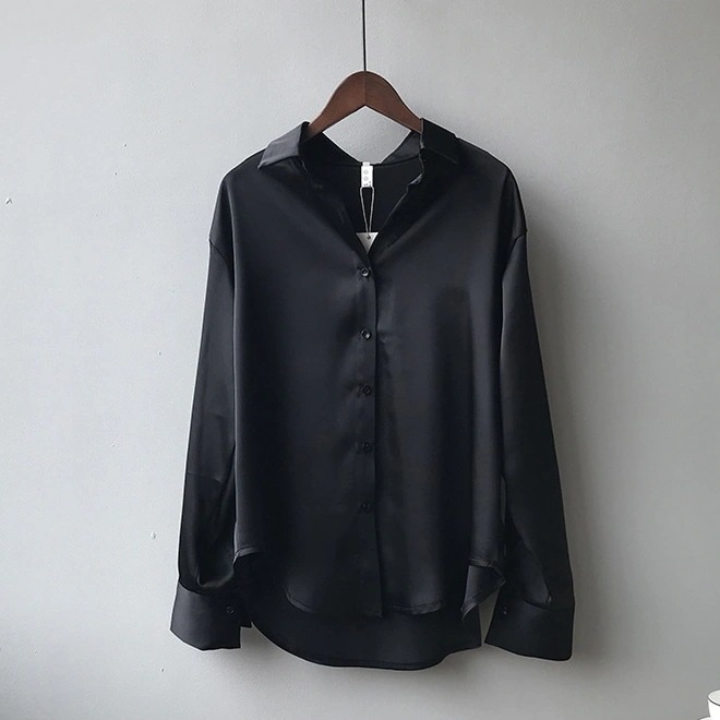2025 ブラウス 秋 長袖シャツ サテンシャツ 新作 韓国ファッション 無地 ゆったり 着痩せ レディース 春夏 長袖トップス