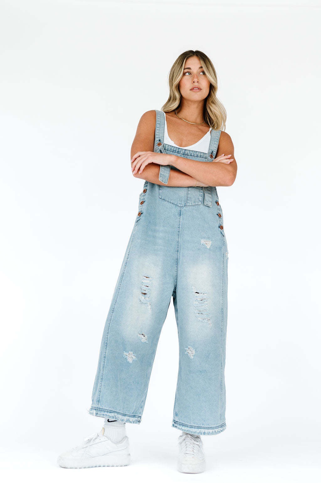コーデ完成!サロペット ファッションレトロ破れ加工ゆったりワイドレッグ快適デニムサスペンダーパンツ