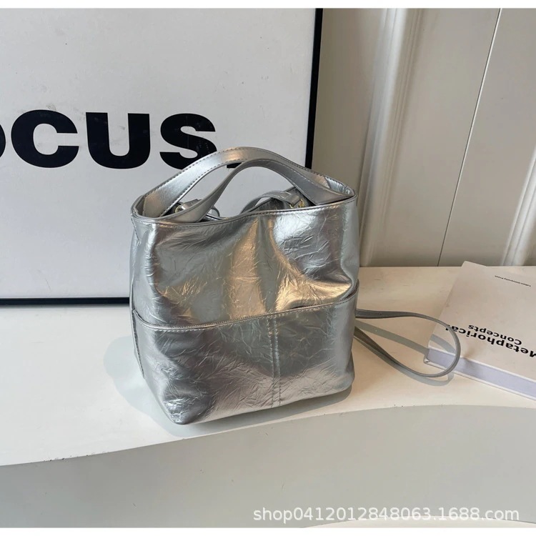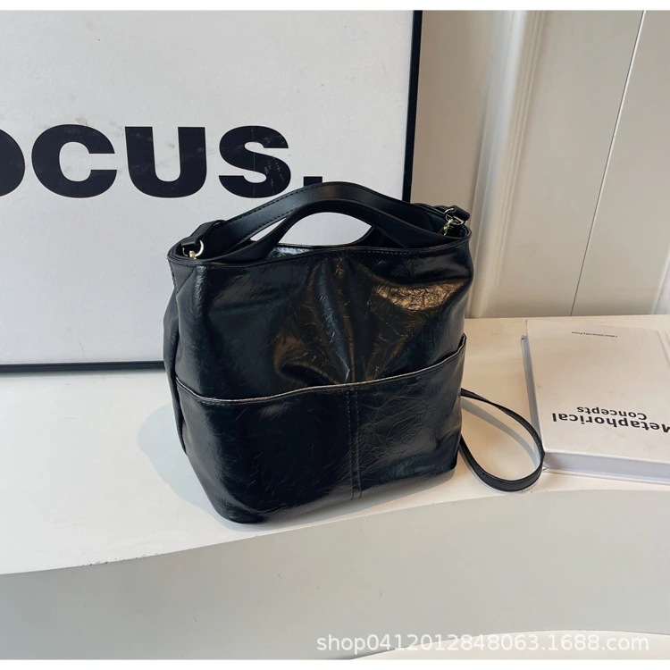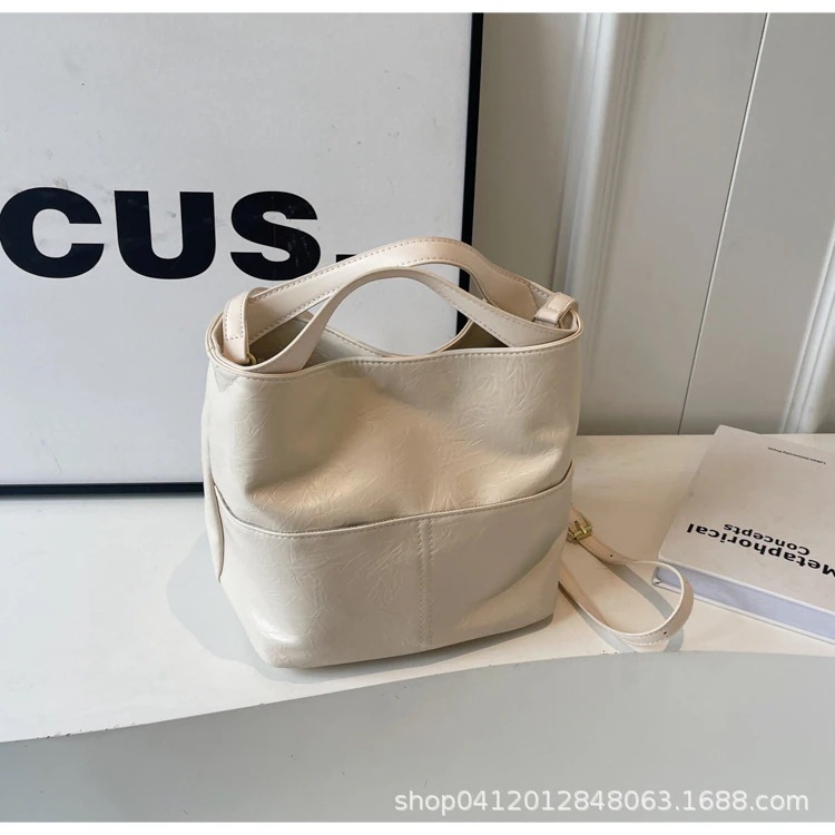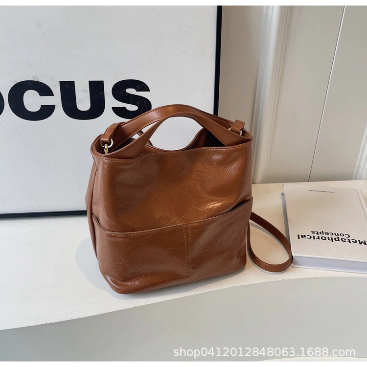 ファッション テクスチャ バケツ バッグ 女性 2025 新作 シンプル レトロ クロスボディ バッグ 人気 爆発 通勤 純色 ショルダーバッグ 斜め掛け ショルダーバッグ