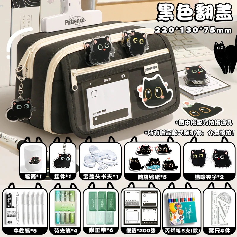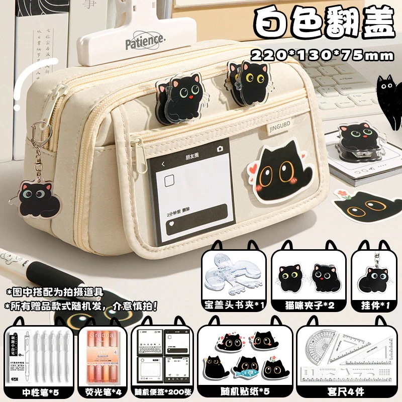 猫の筆箱の女の子の文房具箱の女の子モデルジュニア女性小学生の筆箱の高い価値シンプルなニッチの苦痛袋