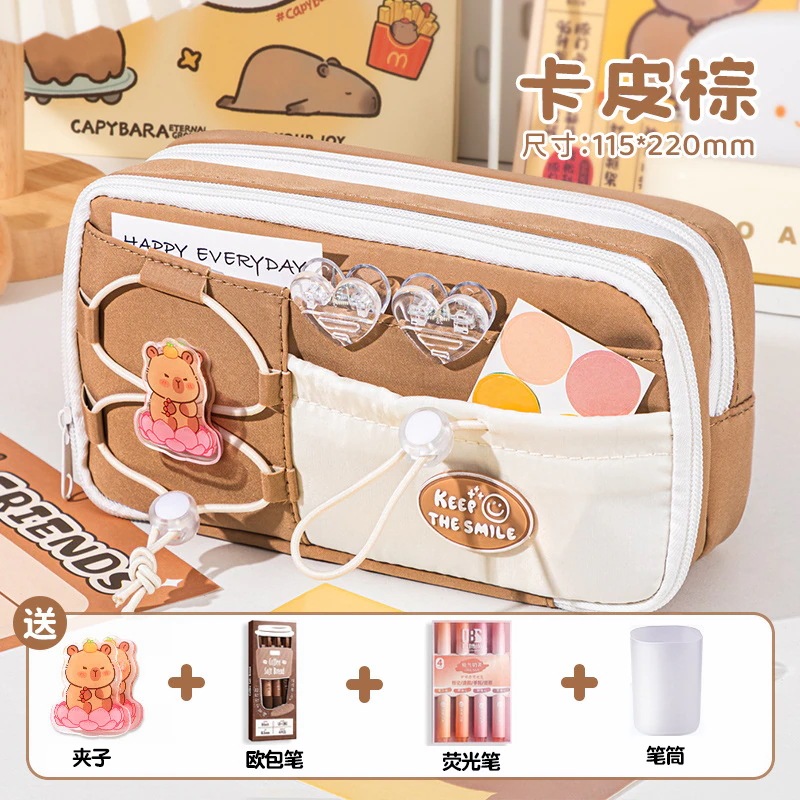 9層ダブル巾着鉛筆袋女性小学生女の子高価値インス風大容量文房具箱中学生子供の男の子