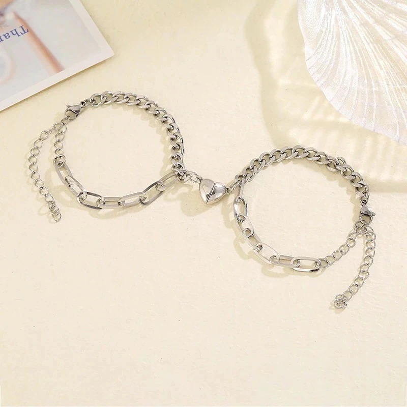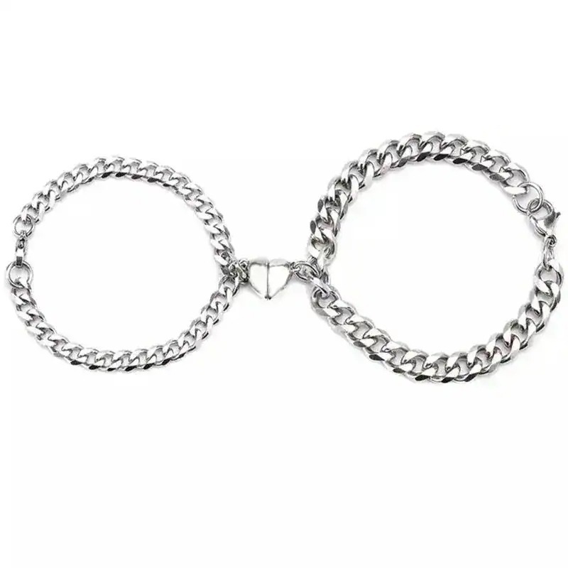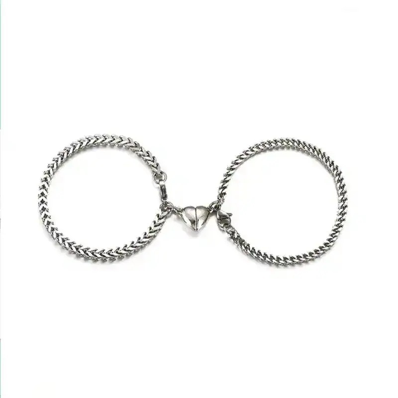 カップル磁気 ブレスレット ハート型 ステンレス鋼 天使 愛のロック 磁気チャーム ギフト 1ペア