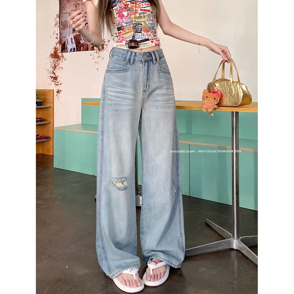 2025春夏 デニムパンツ ロング丈ボトムスハイウエストジーンズ K-POPストリートファッション系韓国風ファッション練習ジーンズ シルエット加工ゆったりレッグレディースカジュアルジーパン衣装