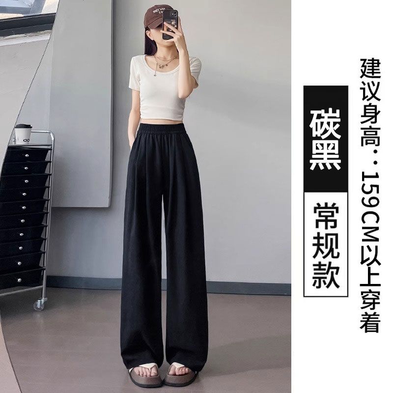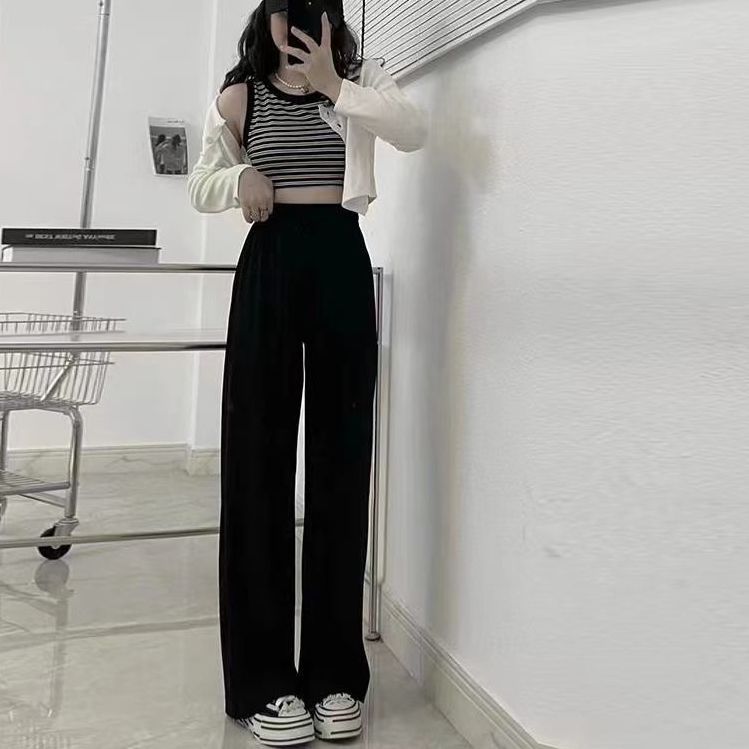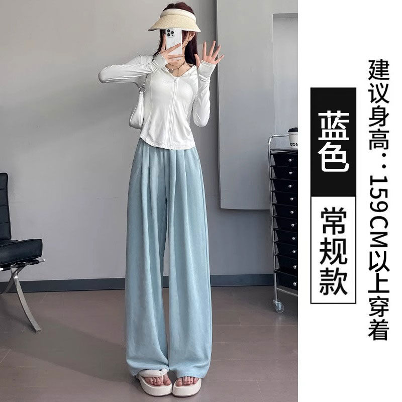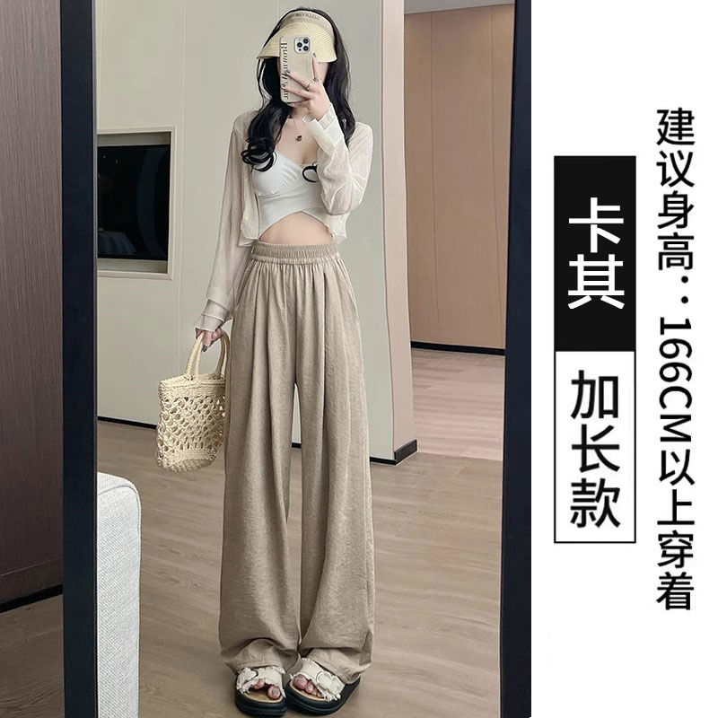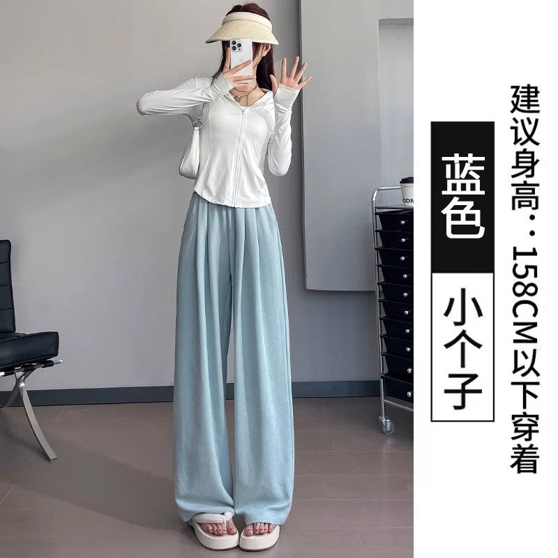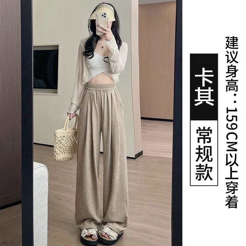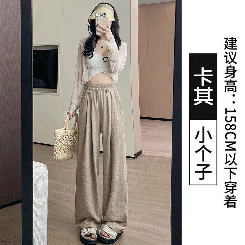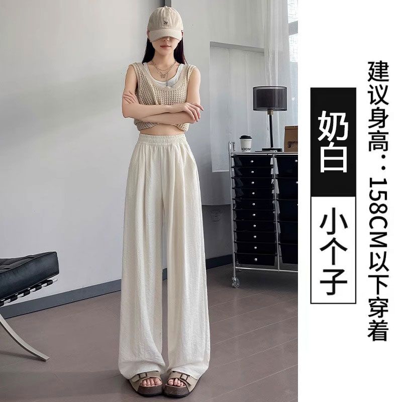 アイスクリーム芙山本パンツ女夏薄手ハイウエストドレープ感ゆったりストレートカジュアル小柄ワイドパンツ