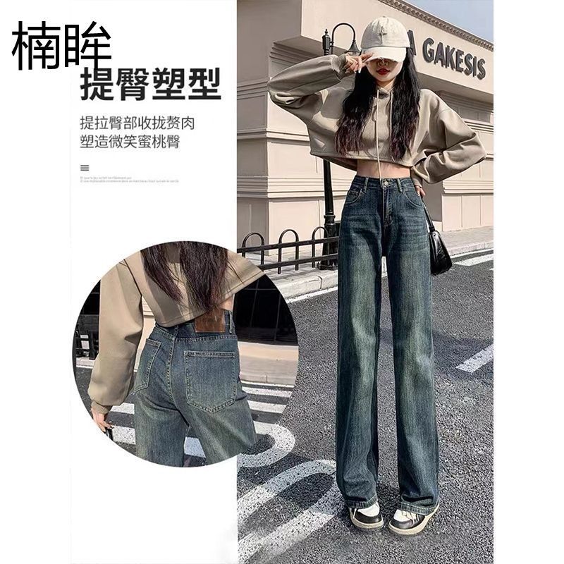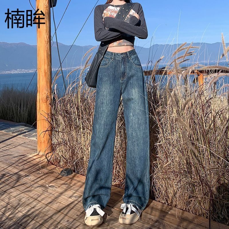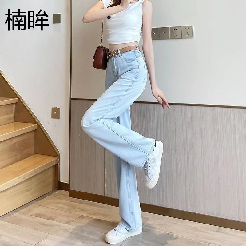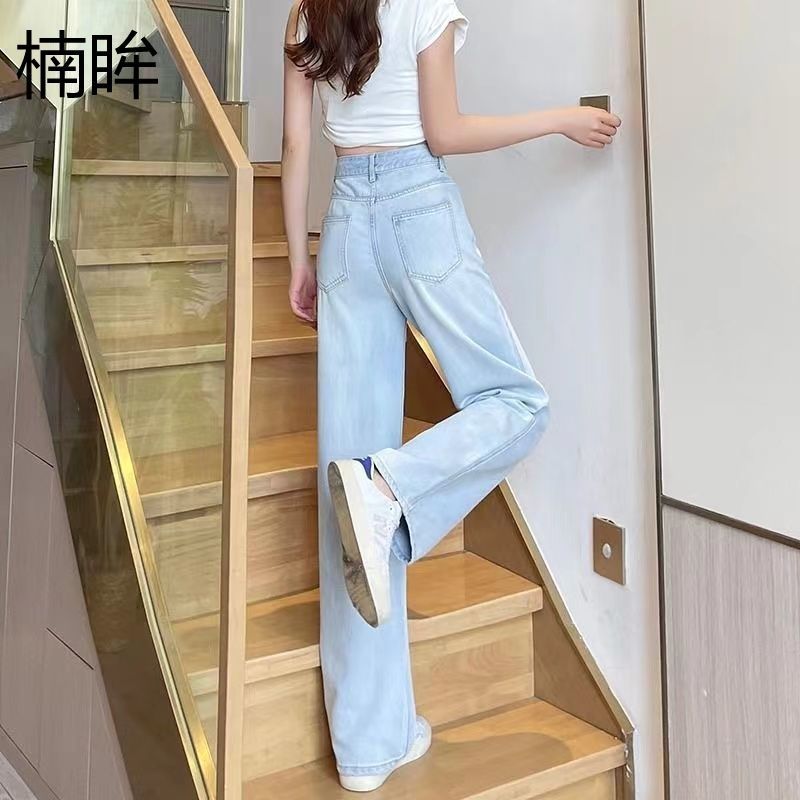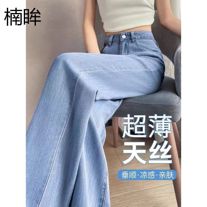 夏の新作ティアードジーンズ女性用ハイウエストスリムストレートアイスドレープスリムワイドパンツ