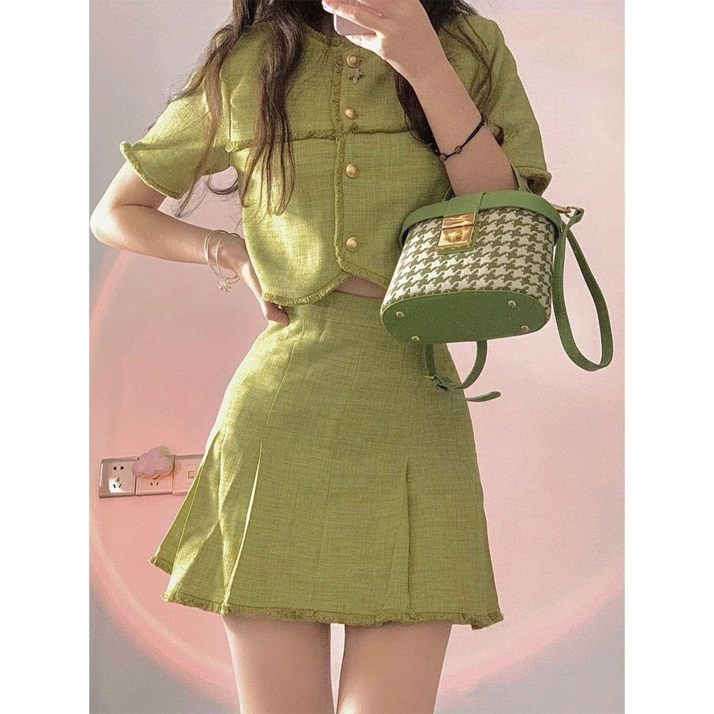 【2点セット】セットアップ レディース 夏 韓国ファッション人气新作した 半袖コート+半身ミニスカート人气新作 レディース 韓国ファッション