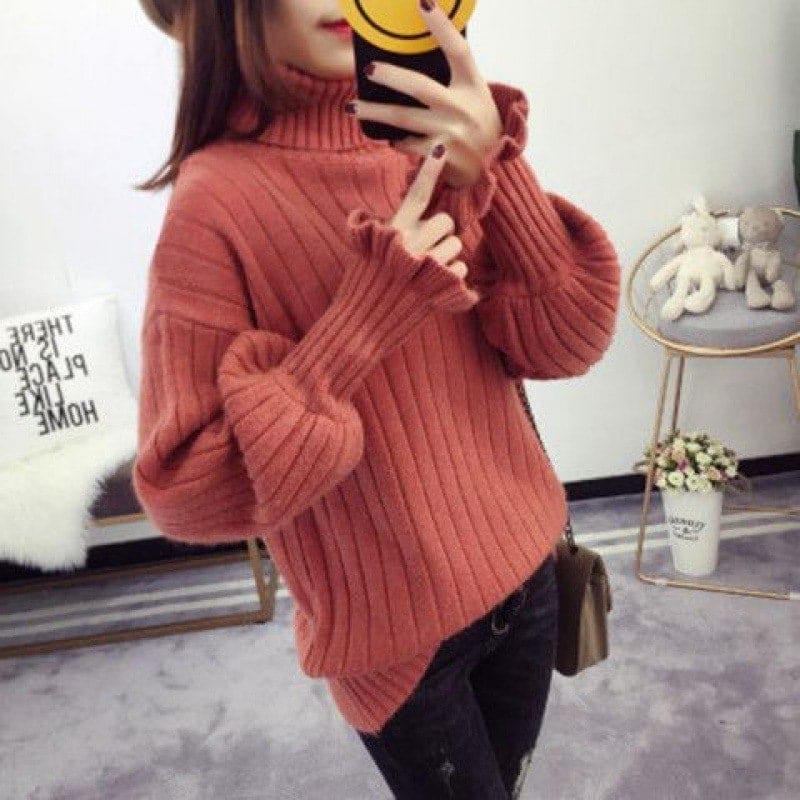 【人気商品】人気なリプニット タートルネックニット シンプル 汎用性が高い バブル袖 セーター 木耳縁 厚手 プルオーバーデザイン ニットカーディガン カシミヤタッチ