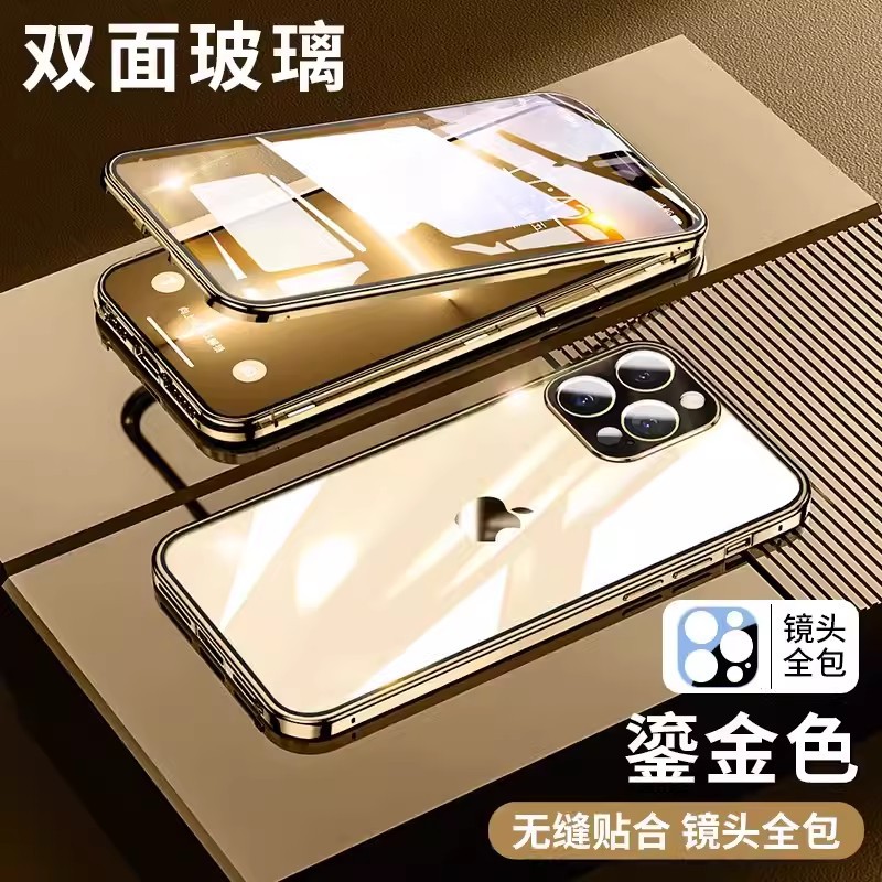 【2025 年新作】両面クリップ × 超強磁石 アップル iPhone 16 Pro Max/15/13 専用 キュート透明ガラスケース