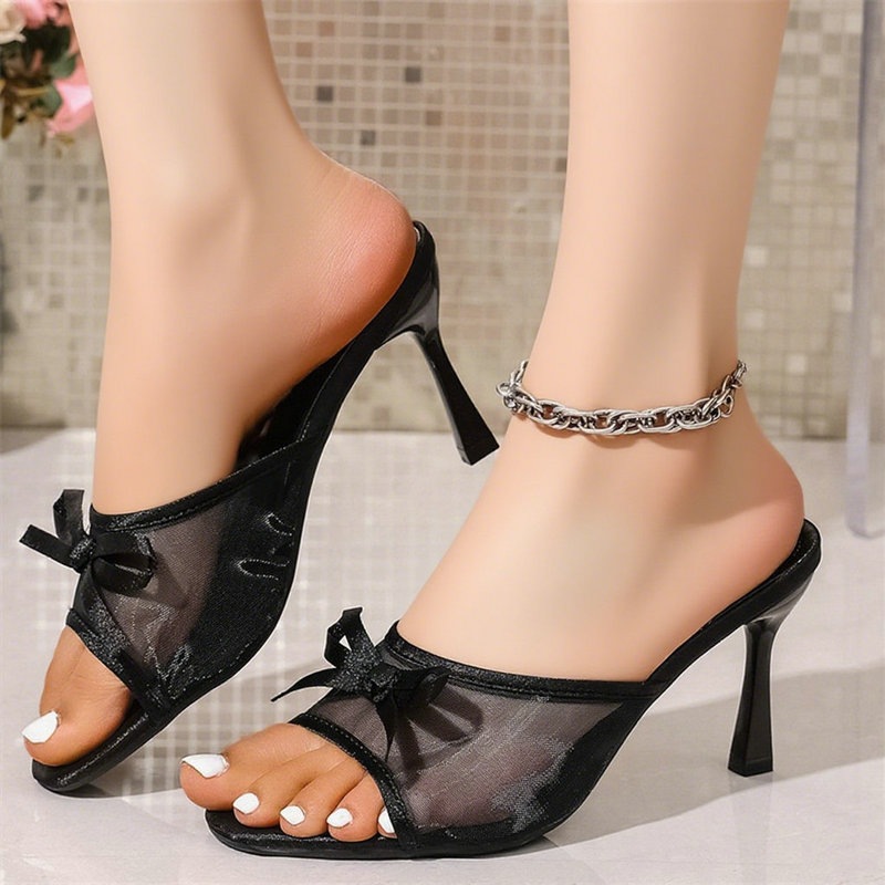 SMFashion全8サイズ ファッション カジュアル スリッパ 大きいサイズ オープントゥ ピンヒール メッシュ スリッパ サンダル 通気性 可愛い ちょう結び サンダル レディース ヒール