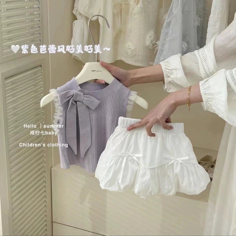 韓国子供服 セット2025新しい子供ニットベストトップ芽スカート2点セット 夏季新作セット 子供服 【本日限定】