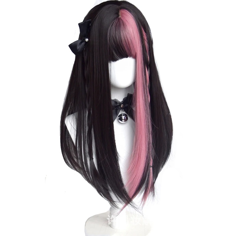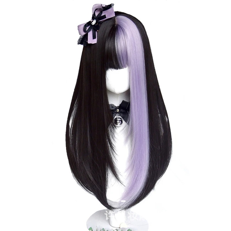 迅速出荷地雷 カラーブロッキングフルヘッドカバー かわいい 前髪 ウィッグ ウィッグ ロング 前髪ウィッグ メイド服 サンタコス コスプレ クリスマスコスチューム