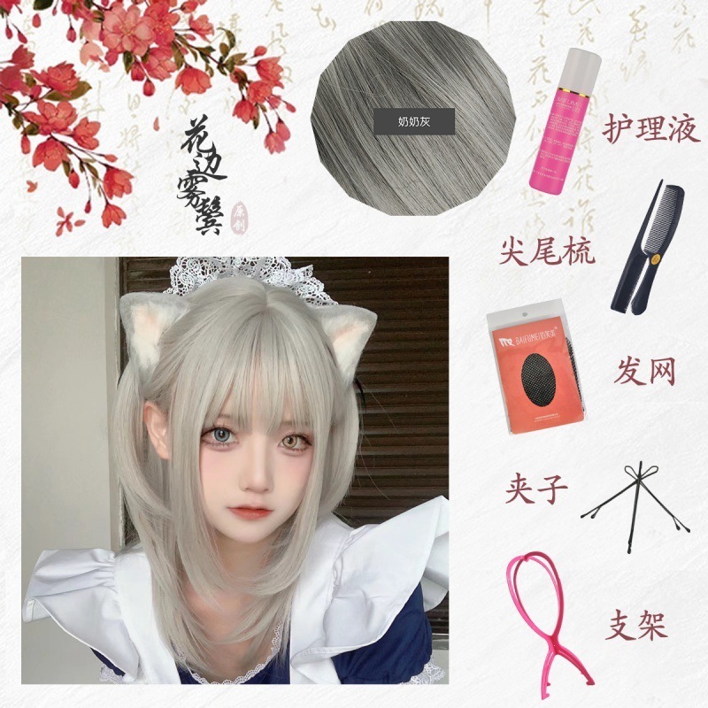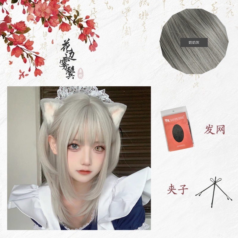 迅速出荷メイドスペシャル ミディアムロングヘア アニメスタイル ロリータ コス用ヘッドギア ウィッグ ウィッグ ロング 前髪ウィッグ メイド服 サンタコス コスプレ クリスマスコスチューム
