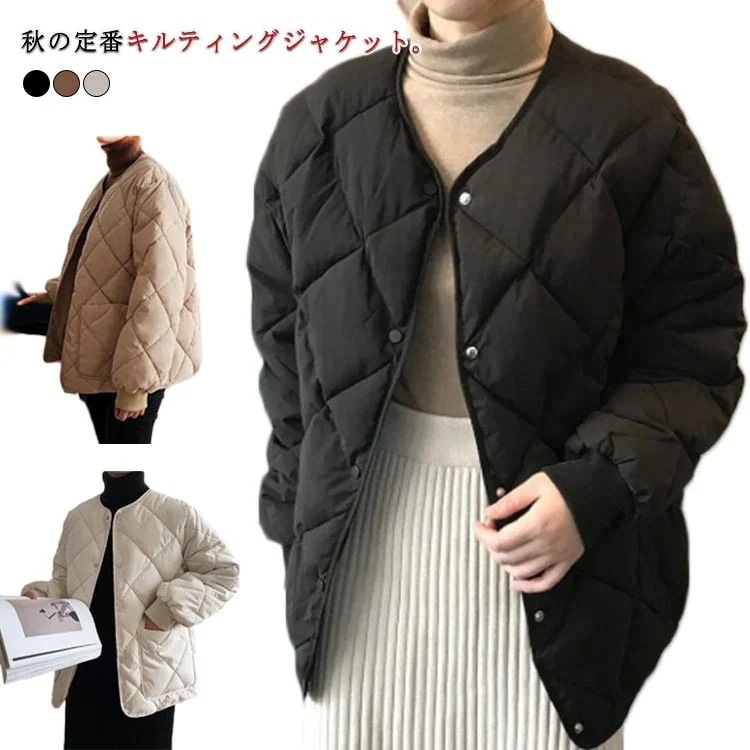 秋冬 アウター ノーカラー キルティング レディース 上着 長袖 ジャケット あったか ショート 冬アウター エコダウンジャケット 中綿コート 防寒 中綿ジャケット インナージャケット キルティング