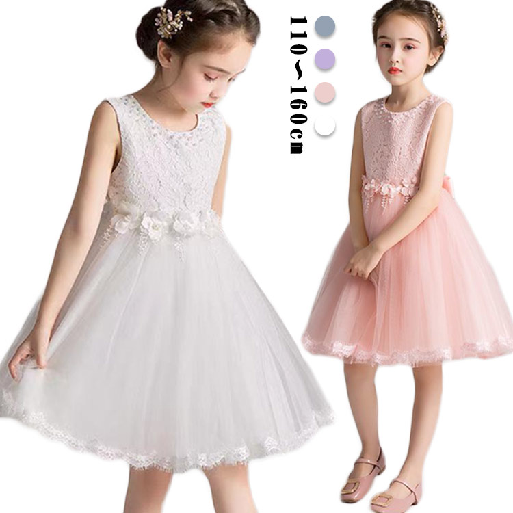 ピアノ発表会 子供ドレス フォーマル パーティードレス ウエディングドレス フラワーガール ガールズ お姫様 真珠 リボン 刺繍 チュール レース 誕生日 七五三 卒業式 発表会 演奏会 結