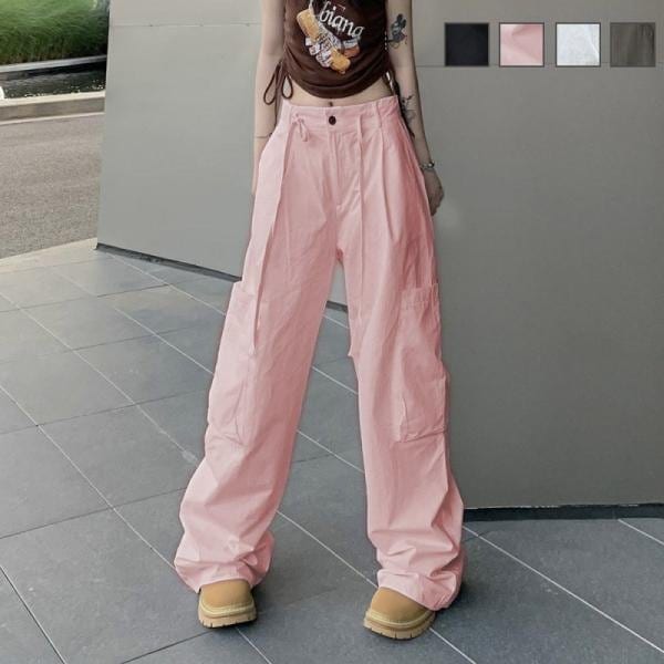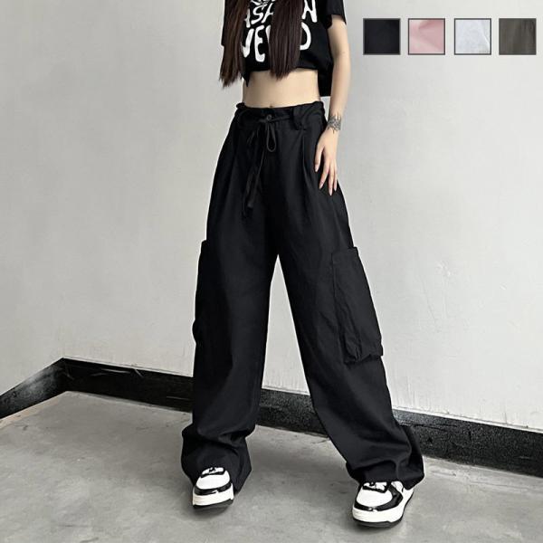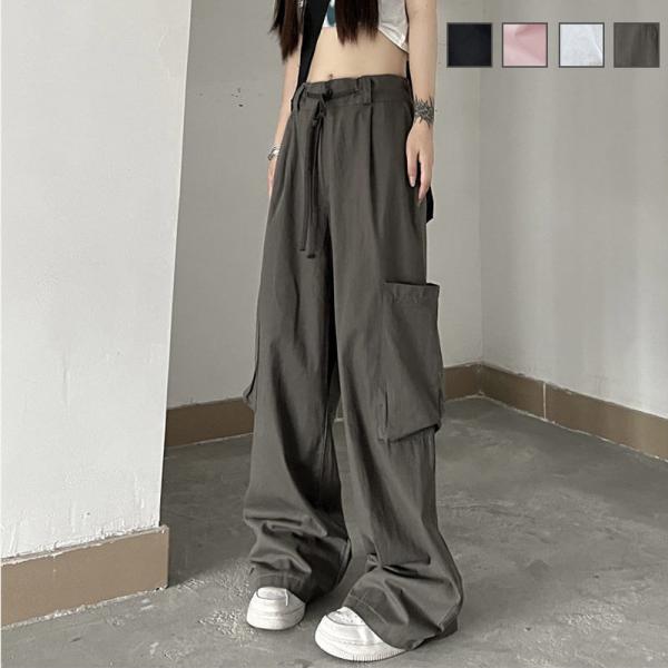 カーゴパンツレディースワイドパンツハイウェストロング丈カーゴレディースパンツレディースロングパンツダンス衣シルエット