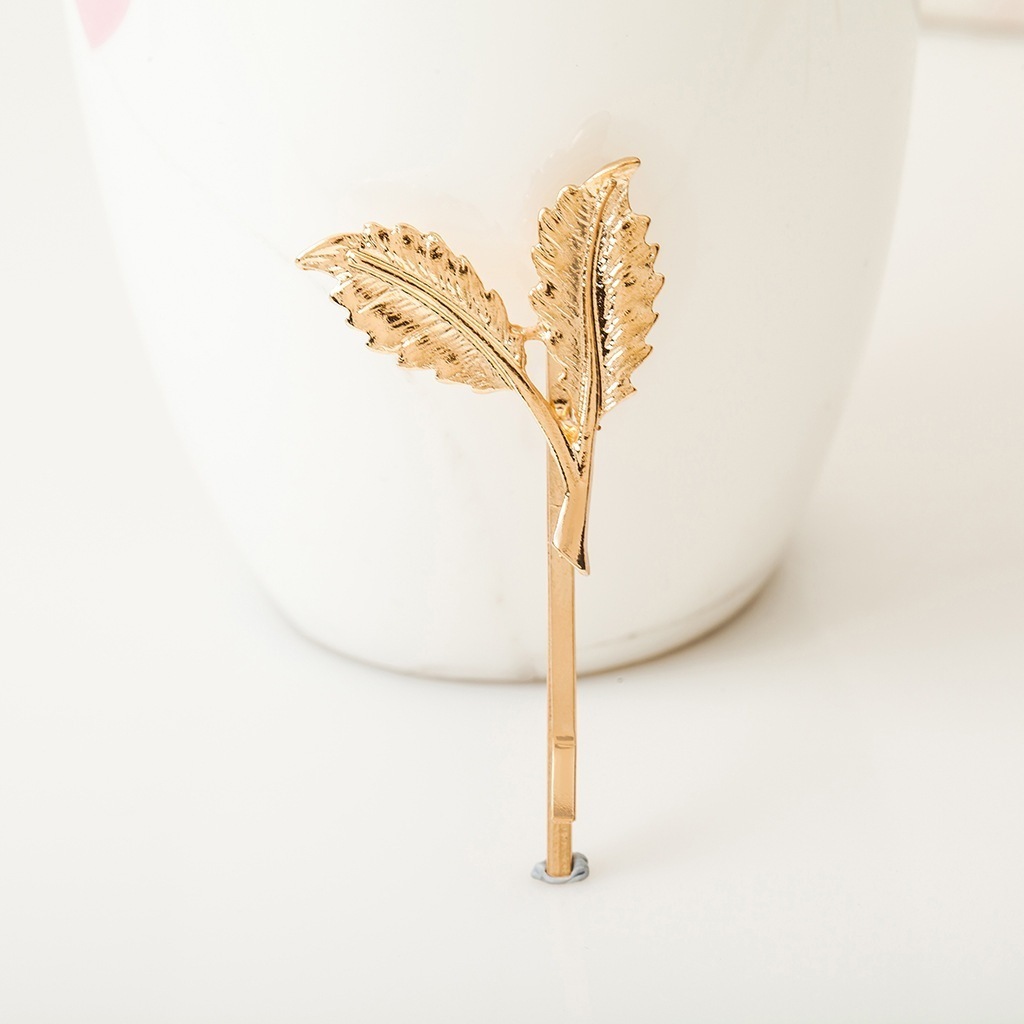 女性用のシンプルな葉っぱのヘアピン甘くて新鮮なメープルリーフのワンワードクリップヘアアクセサリー