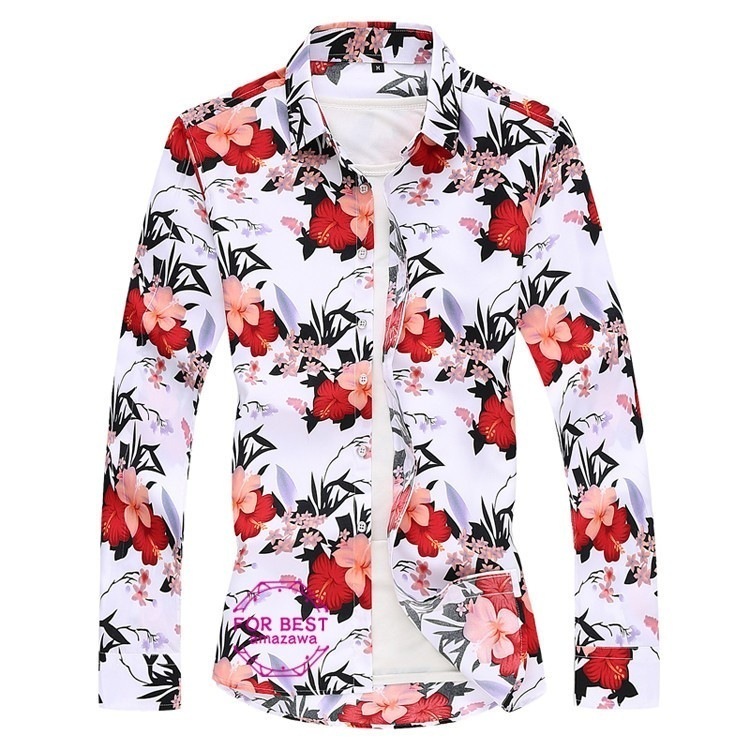 カジュアルシャツ メンズ おしゃれ 長袖シャツ 総柄 花柄シャツ アロハシャツ 英文字 大きいサイズ