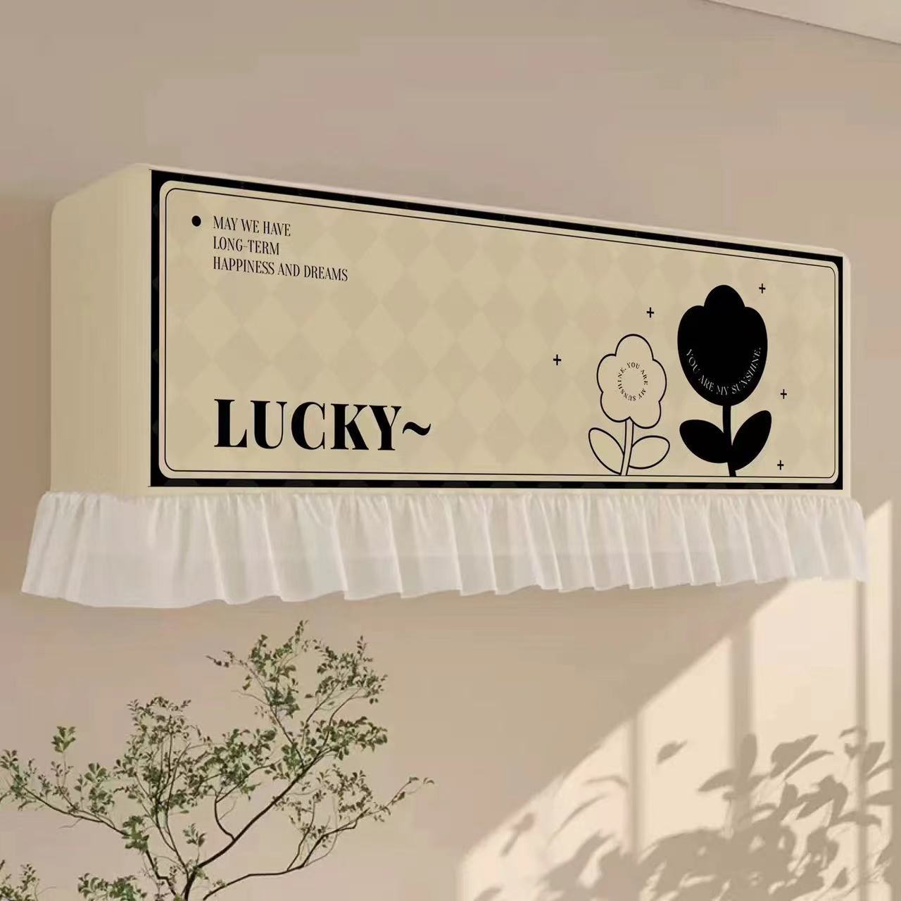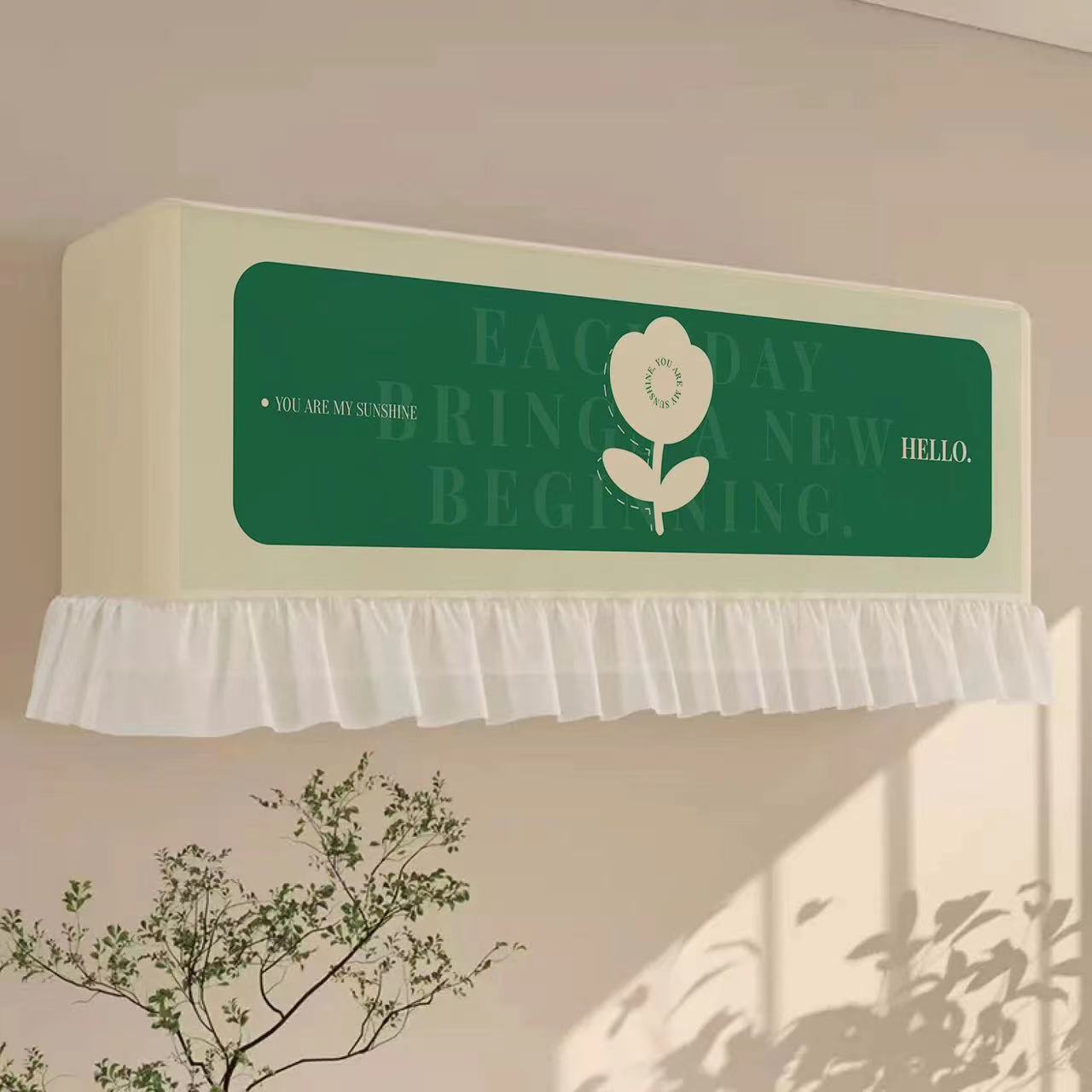 クリーム色のエアコンダストカバーハングアップして電源を入れます直接風が当たらないようにフロントガラスを取り外さないでくださいフロントガラスカーテン産後の寝室用防風カバー