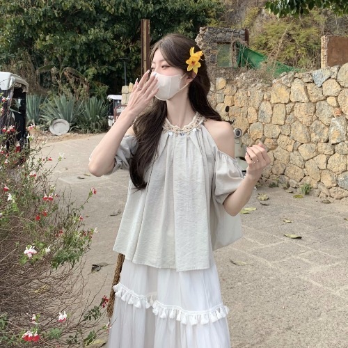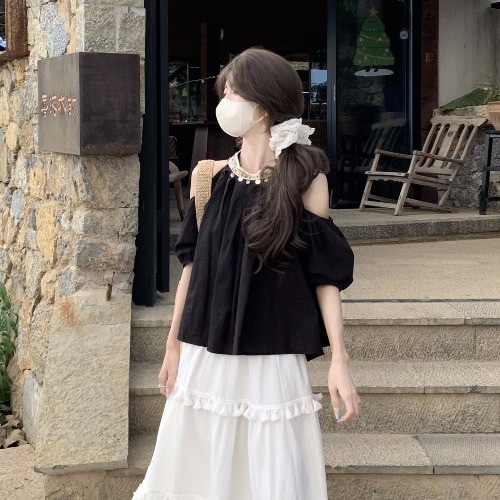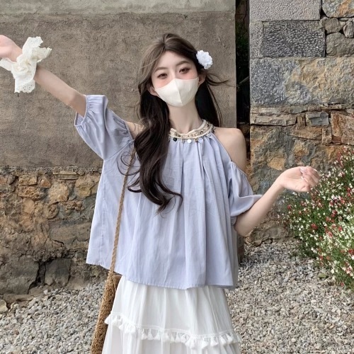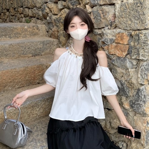 2025夏 韓国トップス かわいい ショート丈シャツ ブラウス 半袖 スクエアネック きれいめ ゆったり 白 おしゃれ大人っぽいフレンチきれいめカジュアル韓国ファッション系レディースお出かけスリーブ