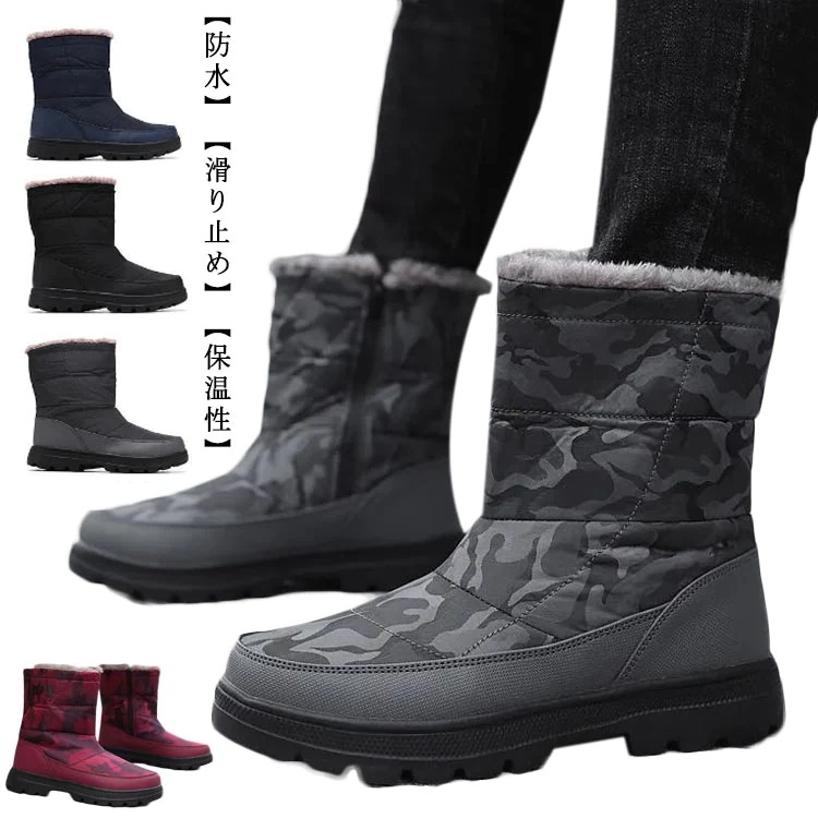 アウトドア ユニセックス ショート レディース ブーツ メンズ 歩きやすい スノーブーツ ウィンターブーツ 雪靴 ミドル丈 ブーツ 防水 ブラック 防寒 保暖 冬用 カジュアル 綿靴 防滑 ボアブーツ