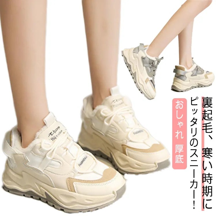 厚底 ダッドスニーカー レディース 冬 冬 グレー スニーカー ベージュ スポーツ 裏起毛 秋 22.5cm25.0cm 韓国 ローカット 美脚 背が高くなる 身長アップ 学生 通学 カジュアル 疲れ